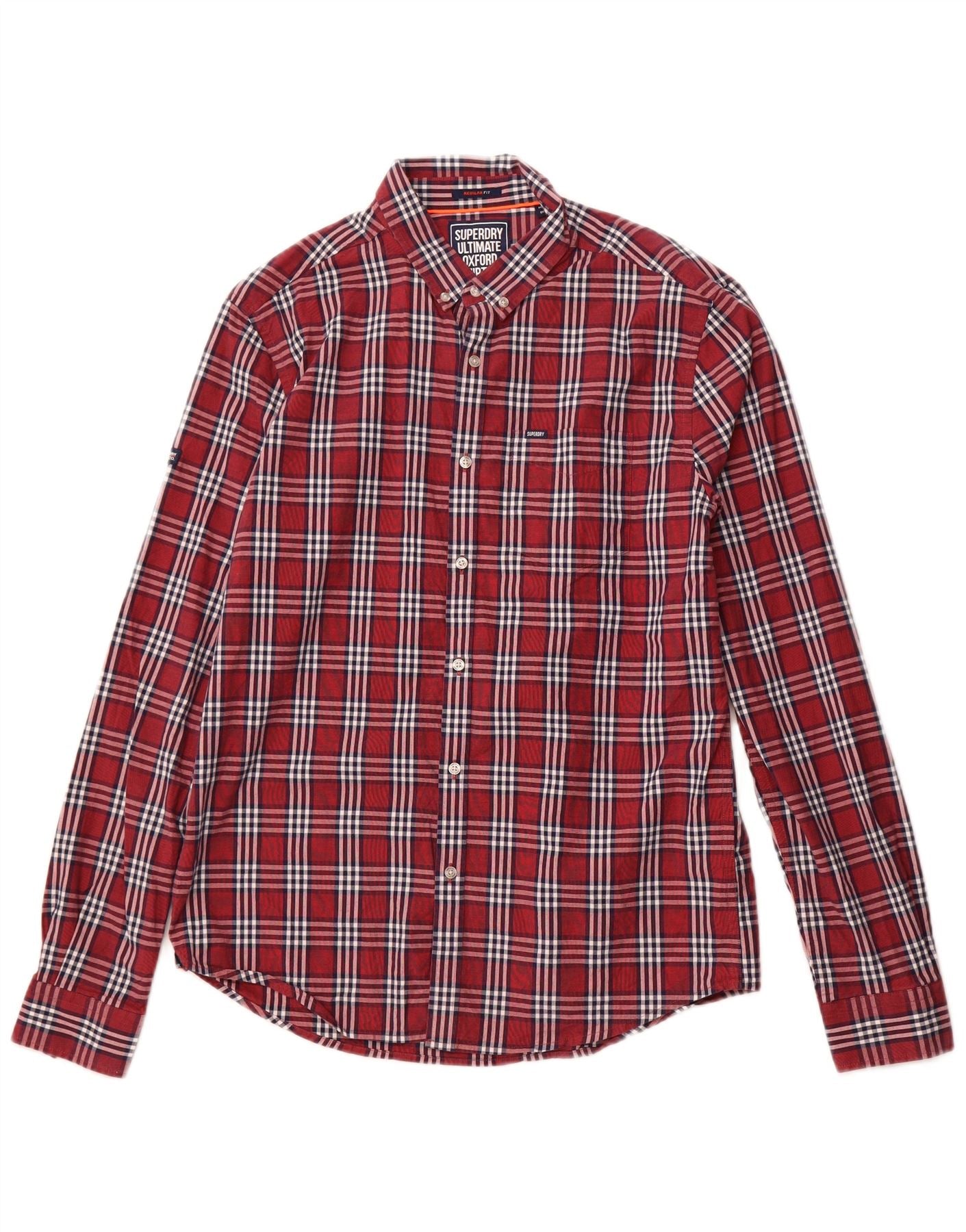 SUPERDRY Herren-Hemd in normaler Passform, groß, burgunderrot, kariert, Baumwolle