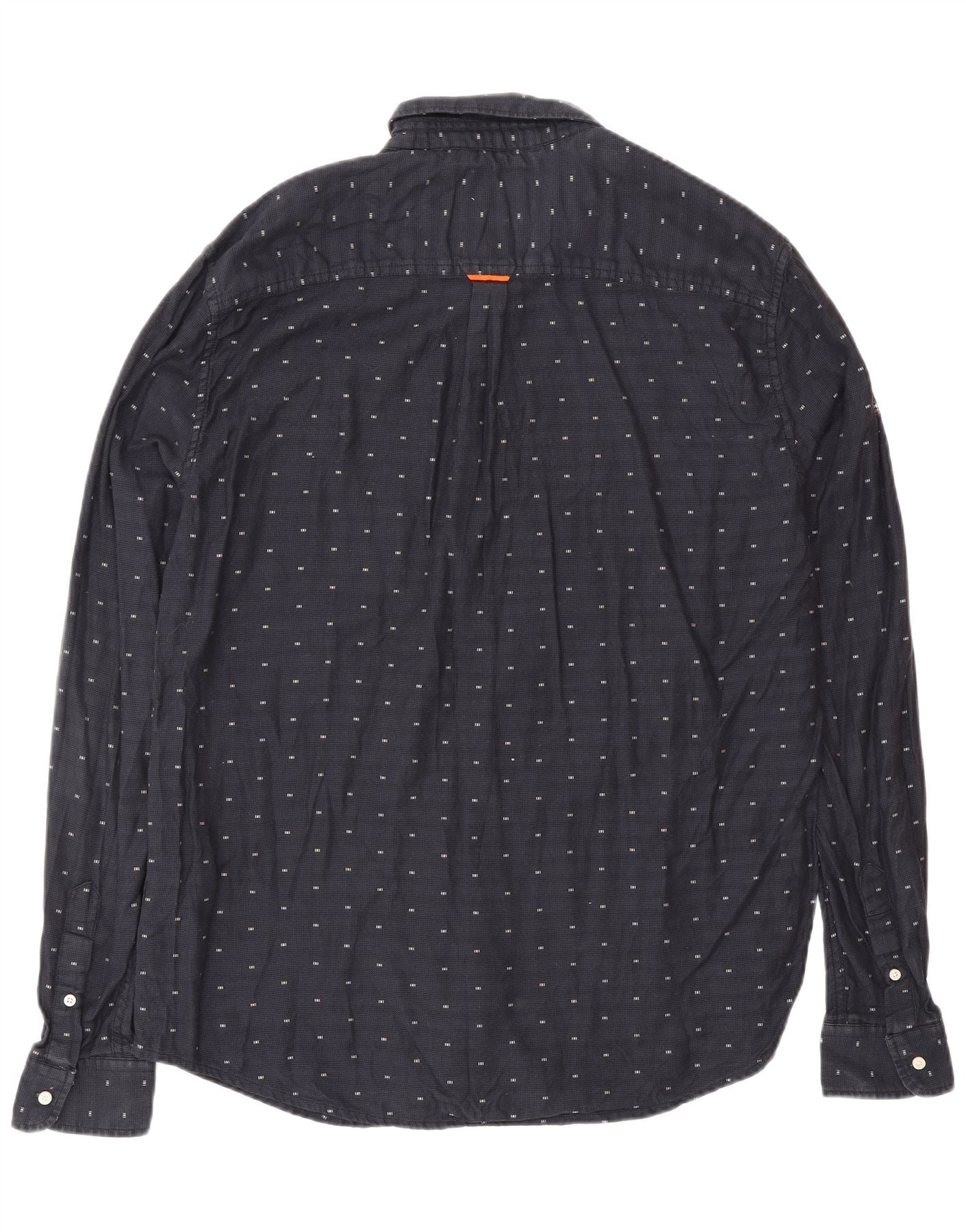 SUPERDRY Herren-Hemd in normaler Passform XL aus marineblau gepunkteter Baumwolle