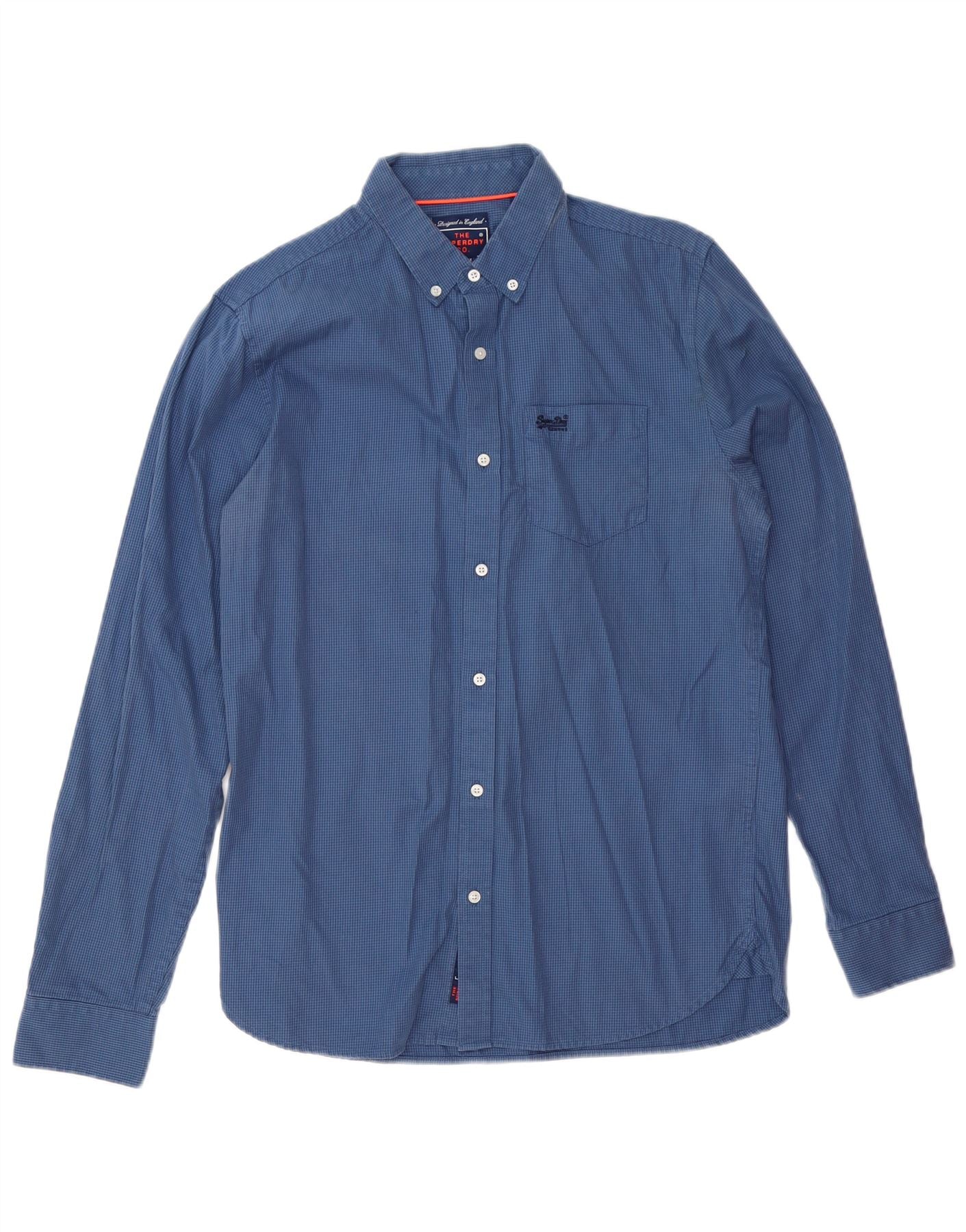 SUPERDRY Herrenhemd aus mittelblauer Hahnentritt-Baumwolle