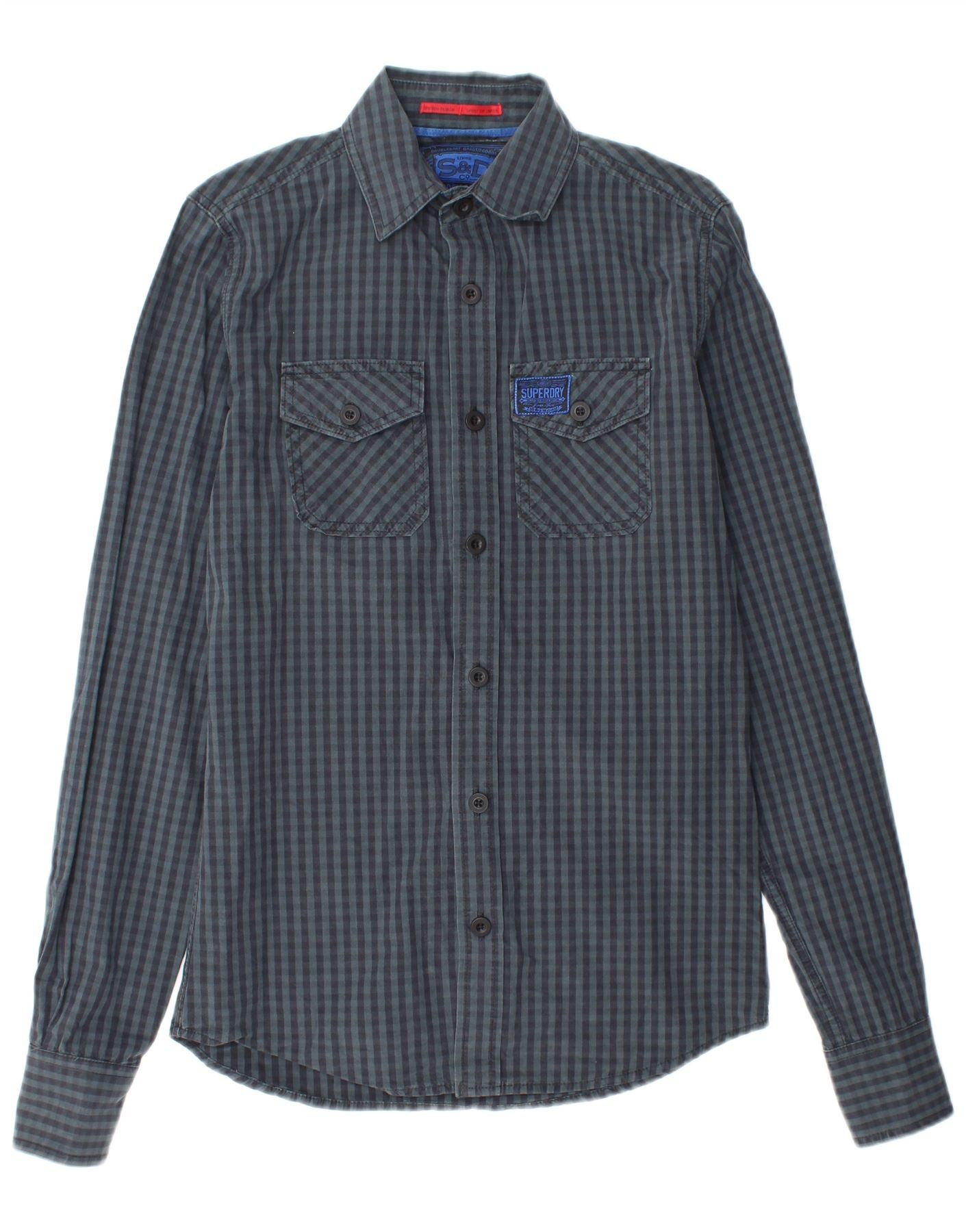 SUPERDRY Herren-Hemd, klein, marineblau, Gingham-Baumwolle