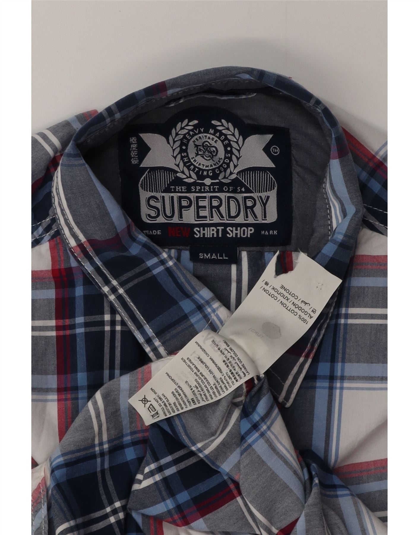 SUPERDRY Herrenhemd aus Baumwolle, klein, marineblau, kariert