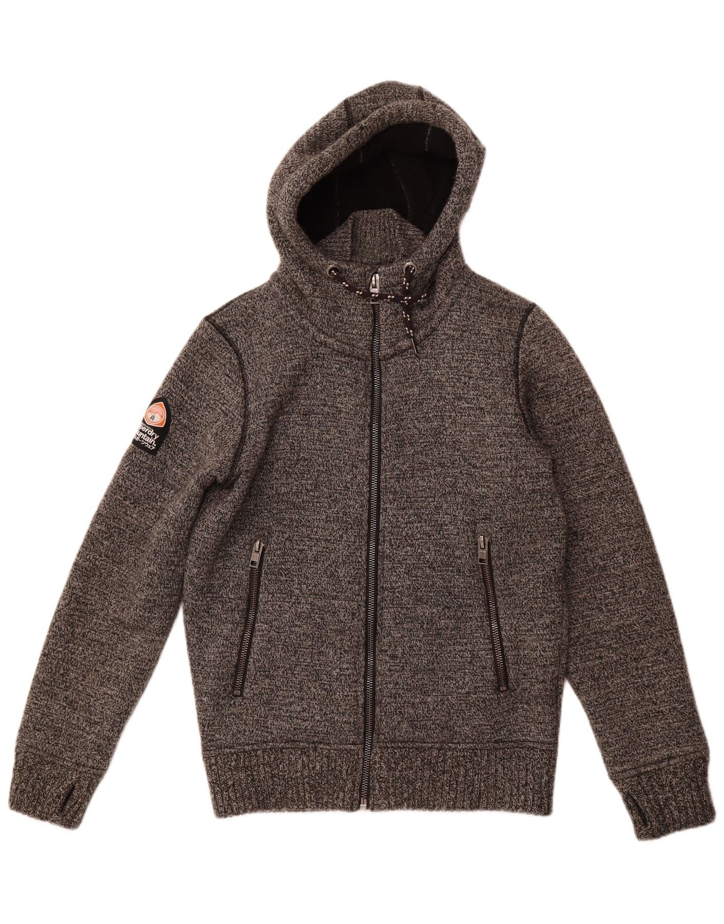 SUPERDRY Herren-Shooting-Strick-Bomberjacke, UK 38, mittelgrau meliertes Nylon