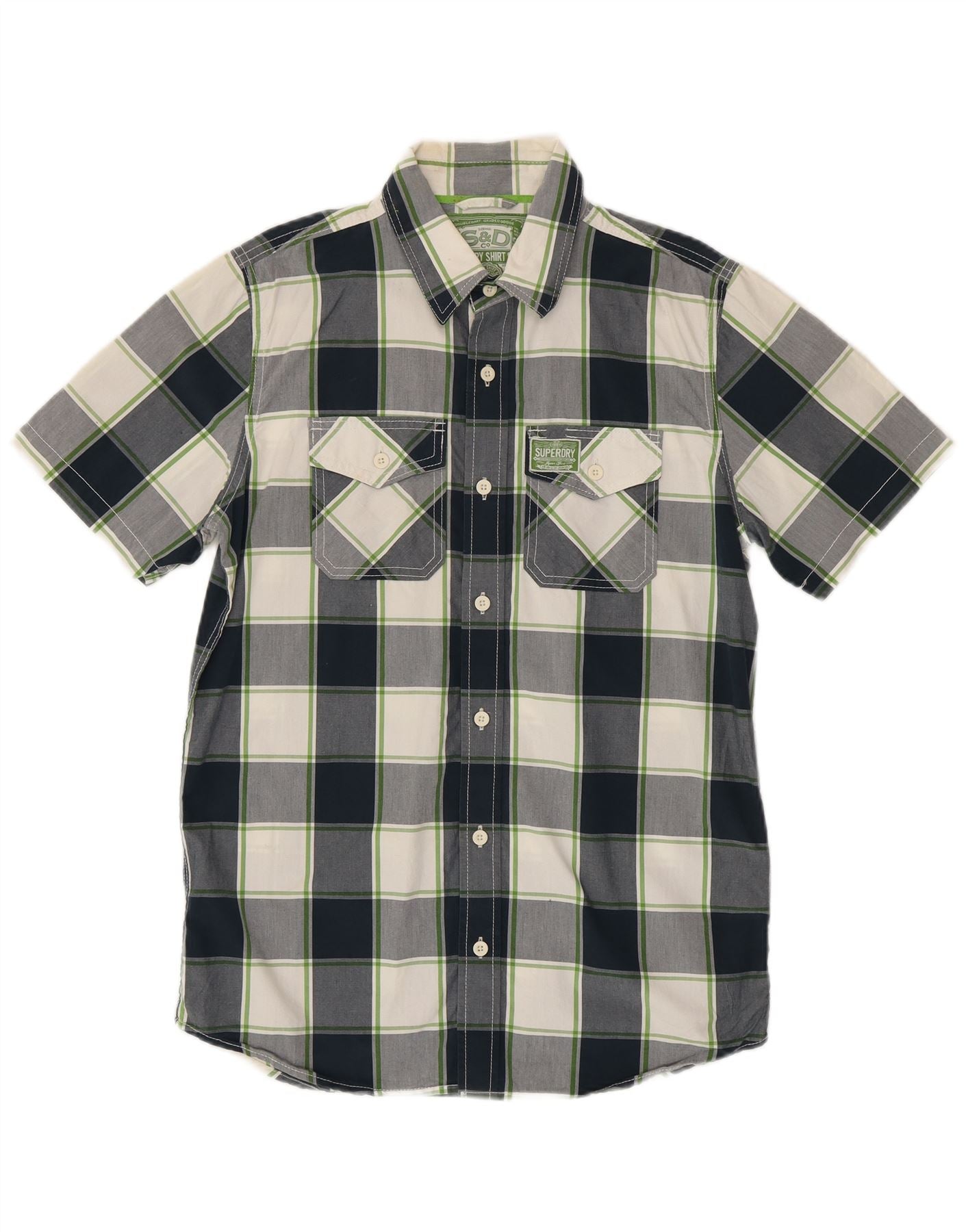 Superdry Herren-Kurzarmhemd, groß, marineblau, kariert, Baumwolle