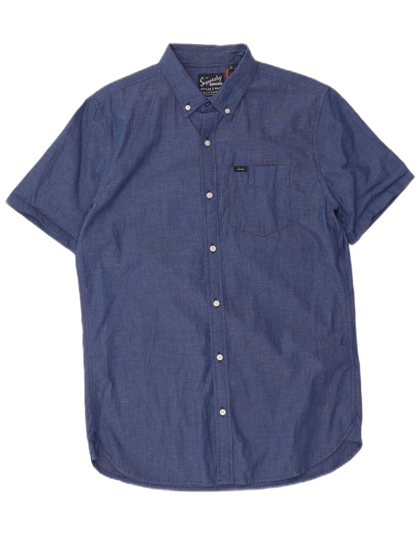 Superdry Herren-Kurzarmhemd, Größe S, Blau, Baumwolle