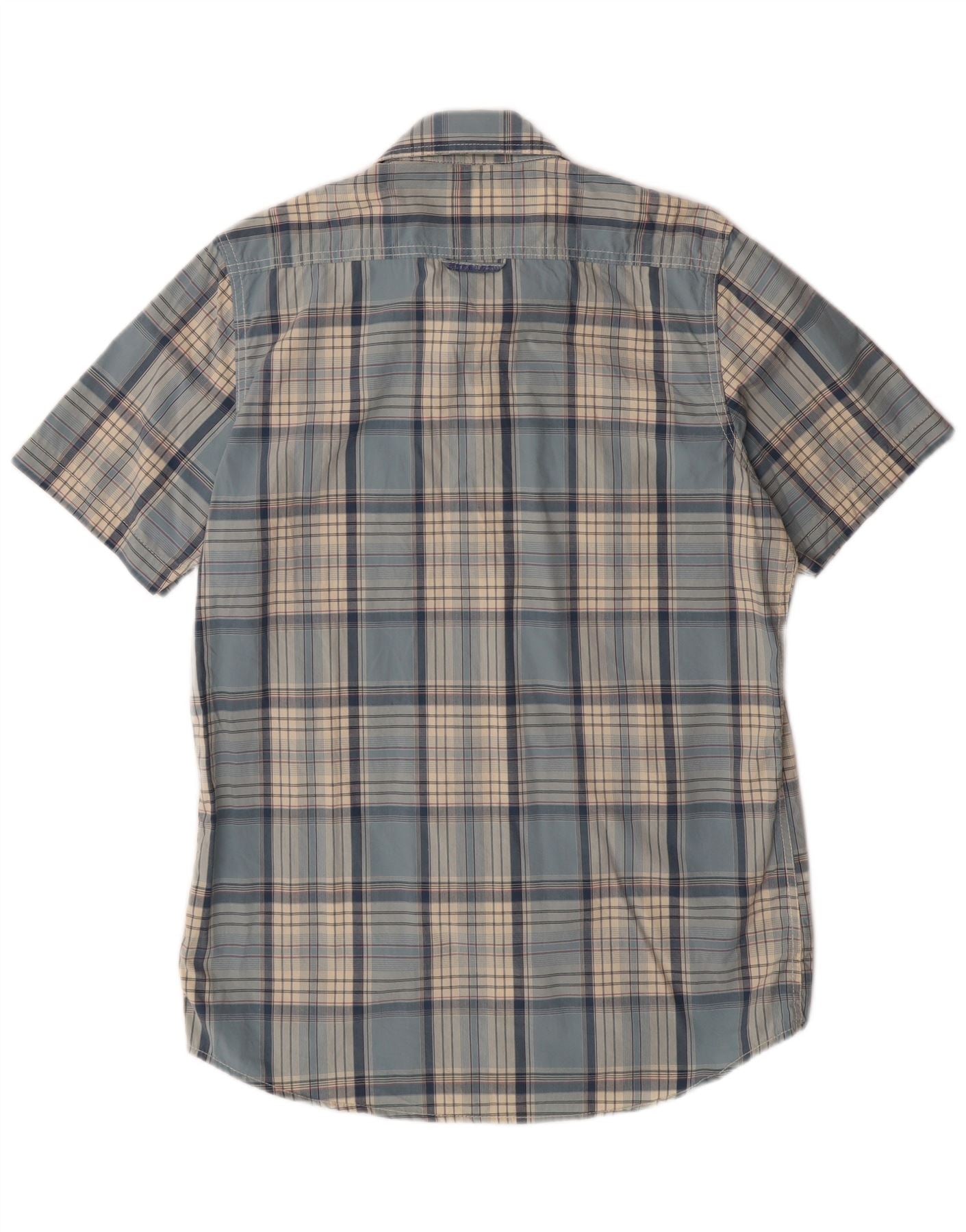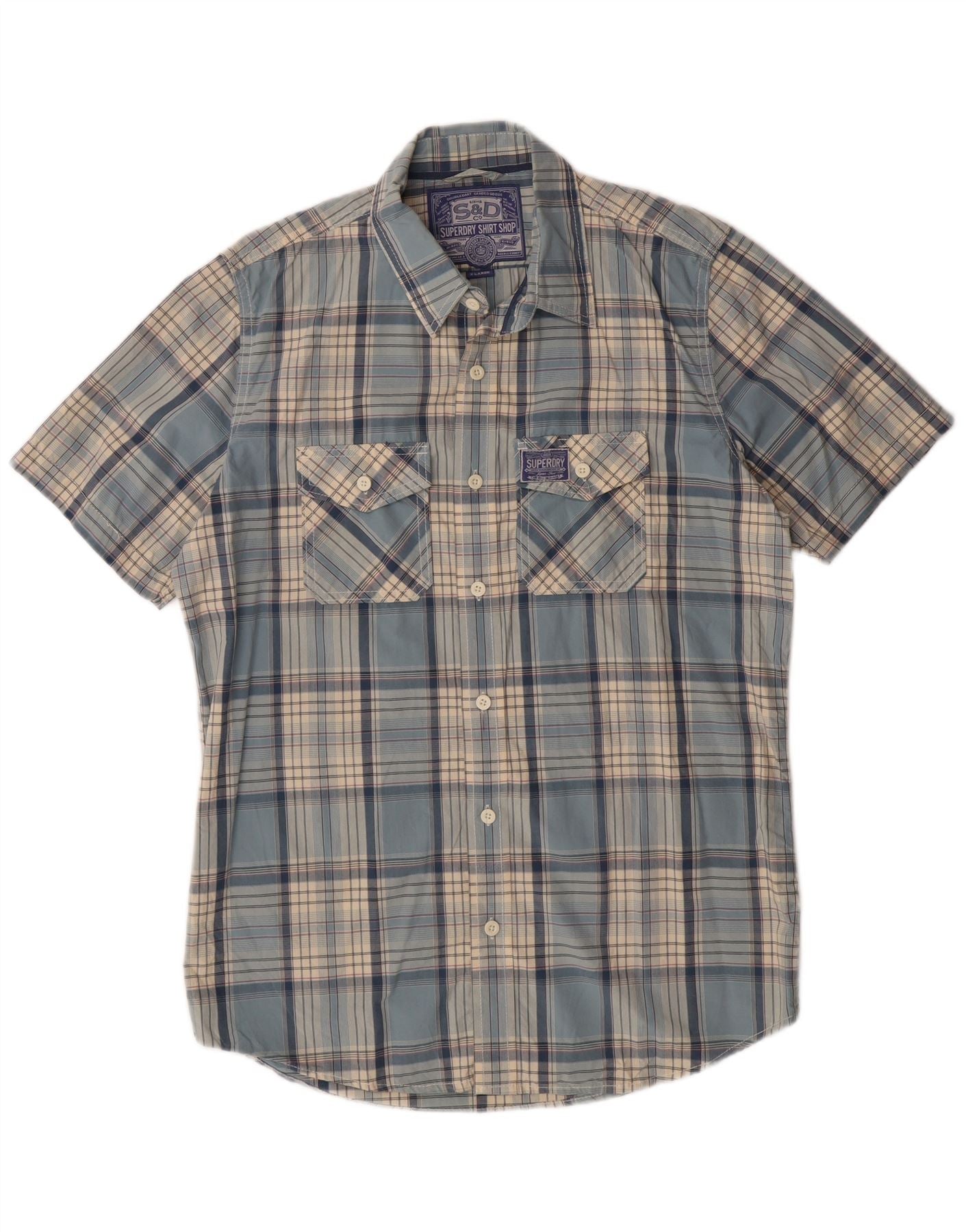 SUPERDRY Herren-Kurzarmhemd XL, blau kariert, Baumwolle