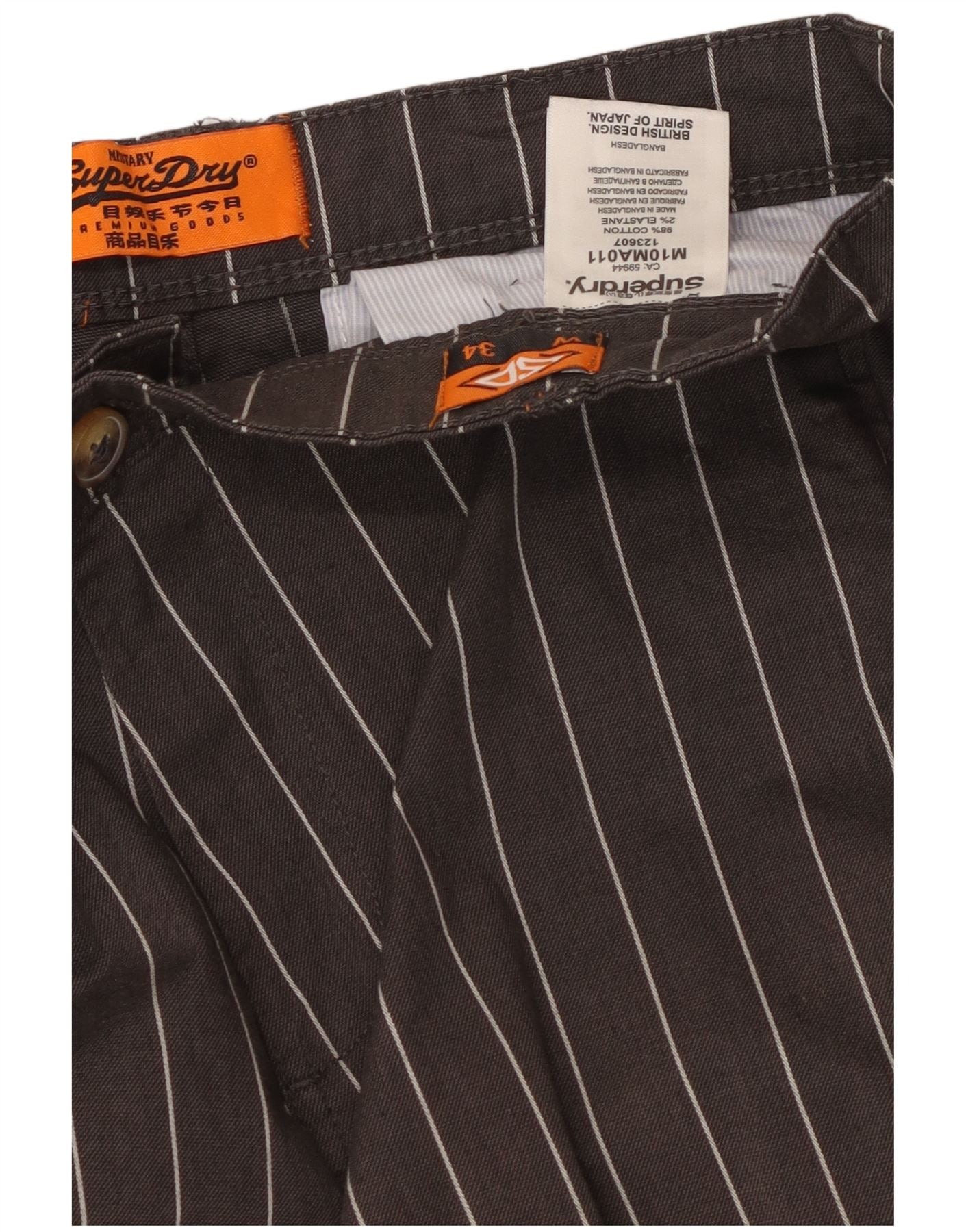 SUPERDRY Slim-Kurzhose für Herren, W34 L24, graue Nadelstreifen-Baumwolle