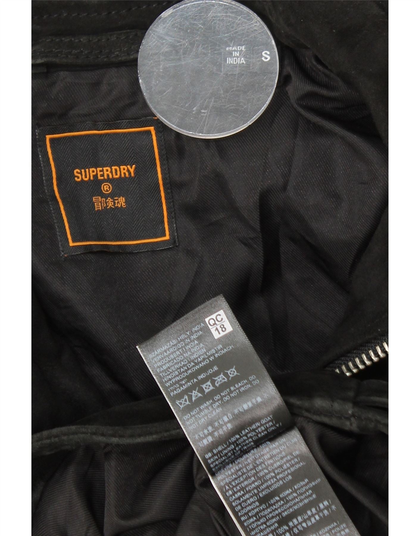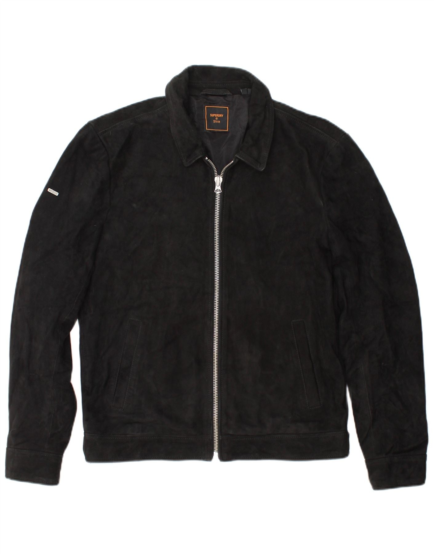 SUPERDRY Herren Wildlederjacke UK 36 Small Schwarzes Leder