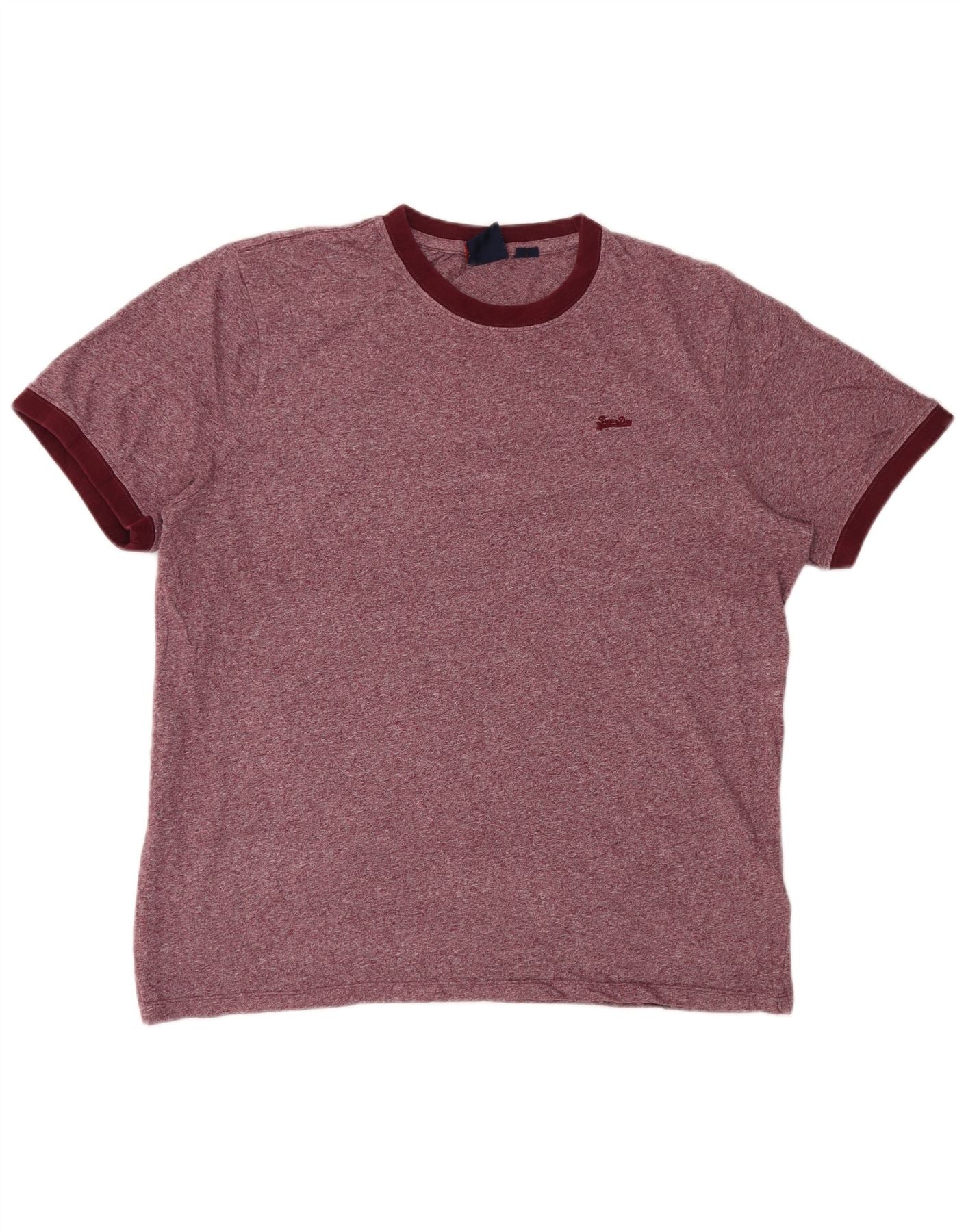 SUPERDRY Herren T-Shirt-Oberteil 2XL Burgunderrot meliert aus Baumwolle