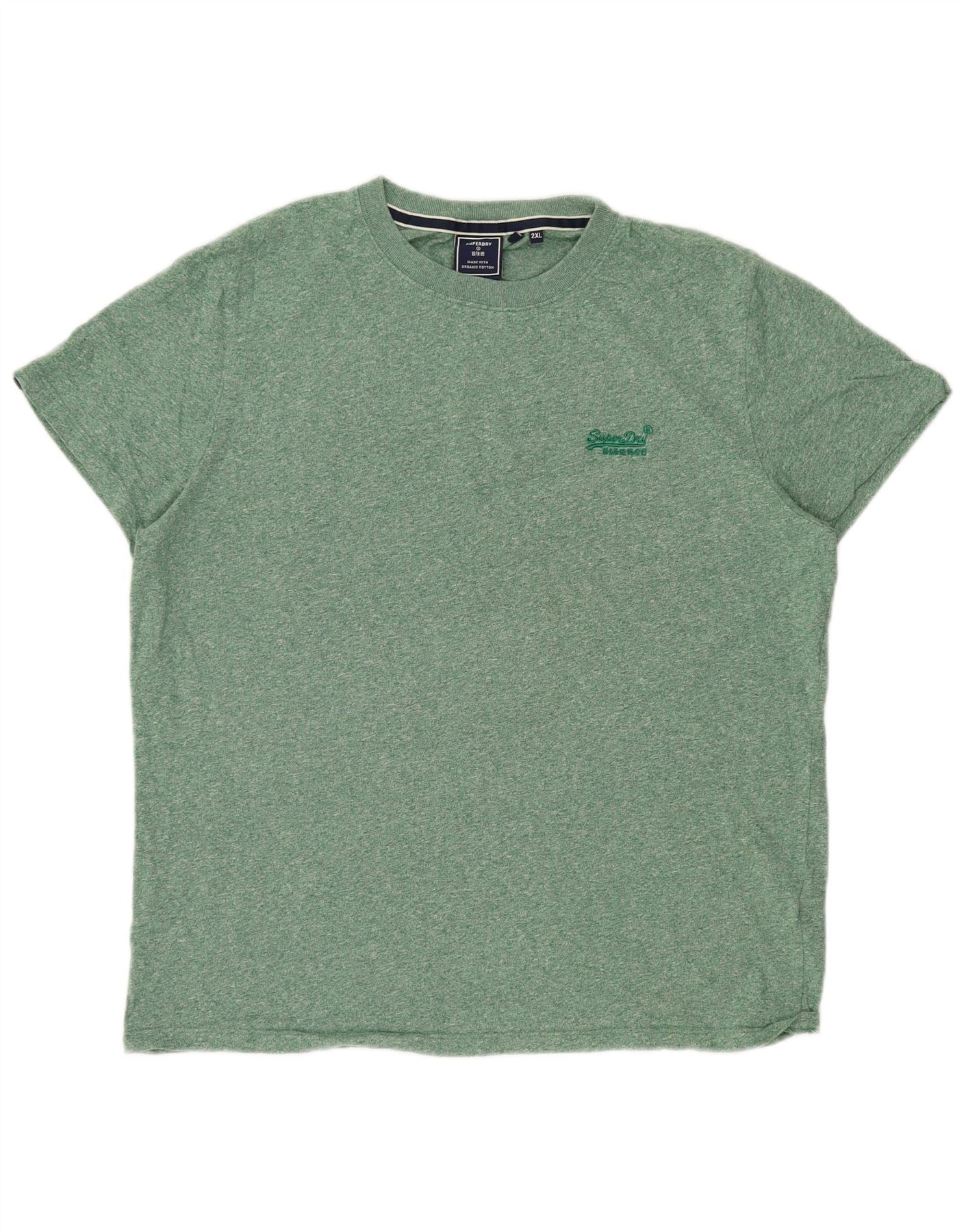 SUPERDRY Herren T-Shirt Top 2XL Grün gefleckte Baumwolle