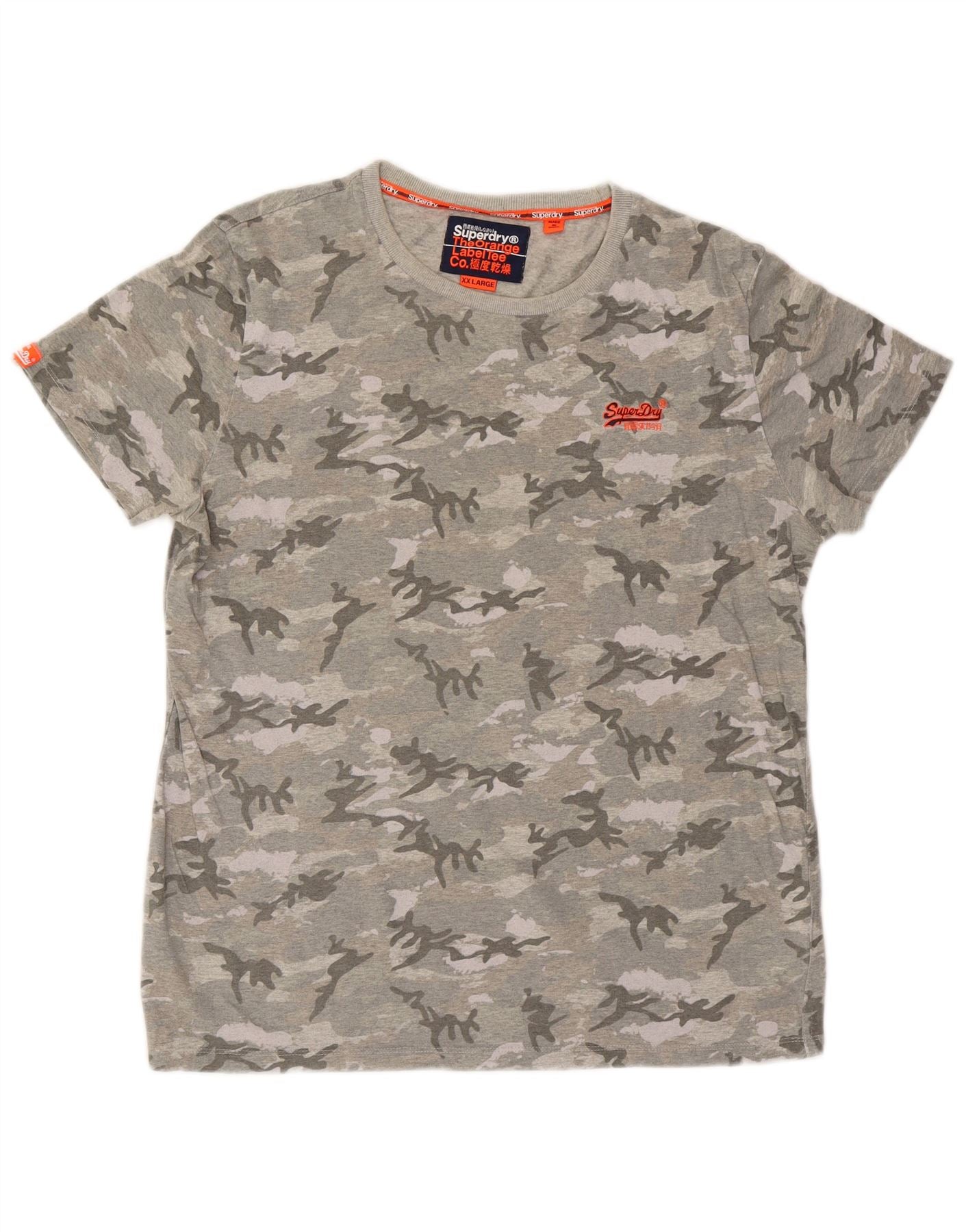 SUPERDRY Herren T-Shirt Top 2XL Grau Camouflage Baumwolle