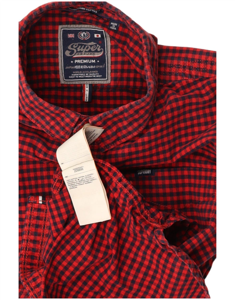 SUPERDRY Maßgeschneidertes Herren-Flanellhemd XL aus roter Gingham-Baumwolle