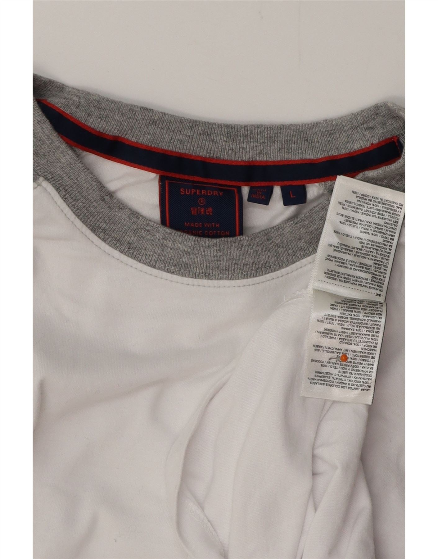 SUPERDRY Herren-Oberteil, langärmelig, groß, weiße Farbblock-Baumwolle