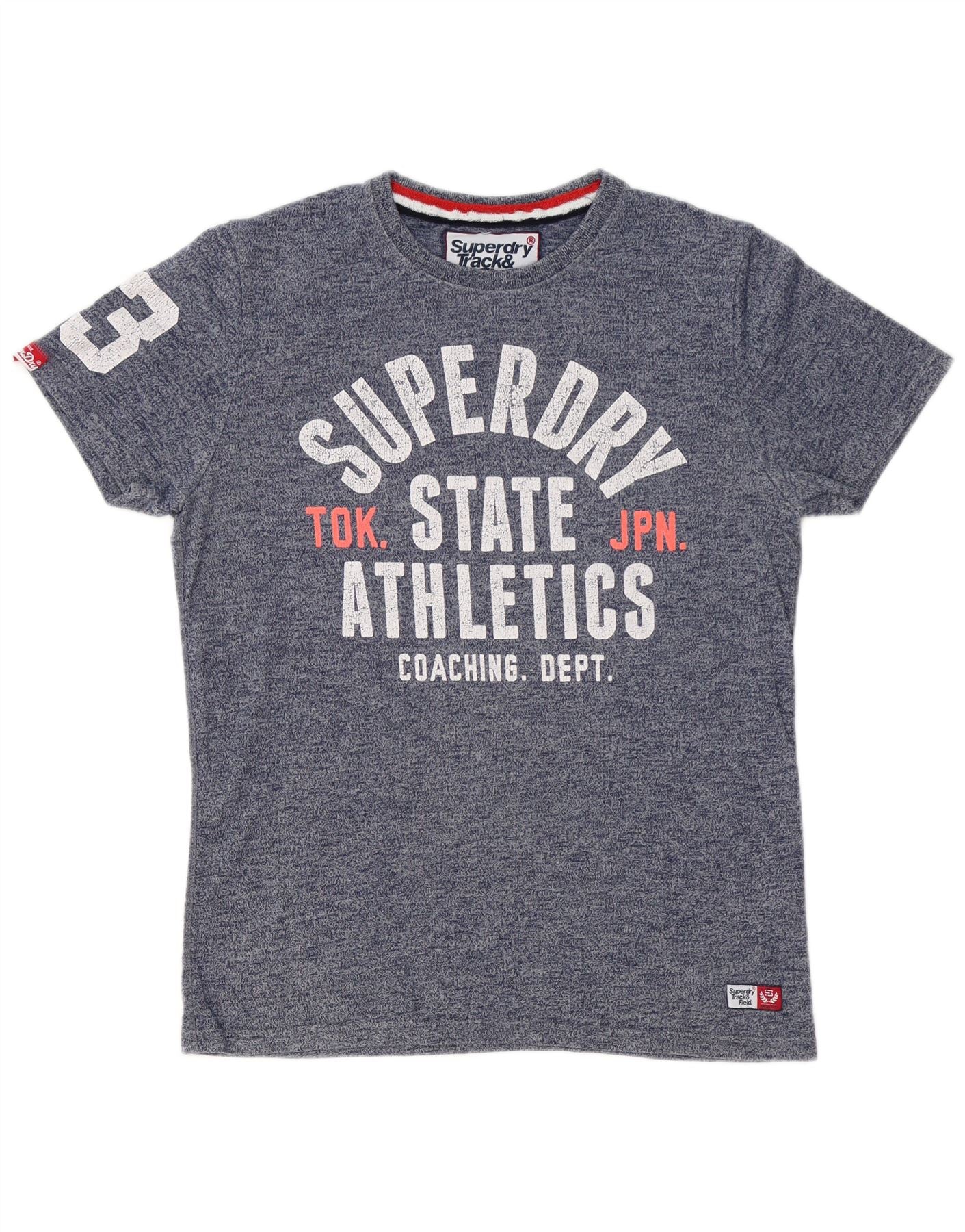 SUPERDRY Herren Leichtathletik-T-Shirt mit Grafik, groß, blau gesprenkelte Baumwolle