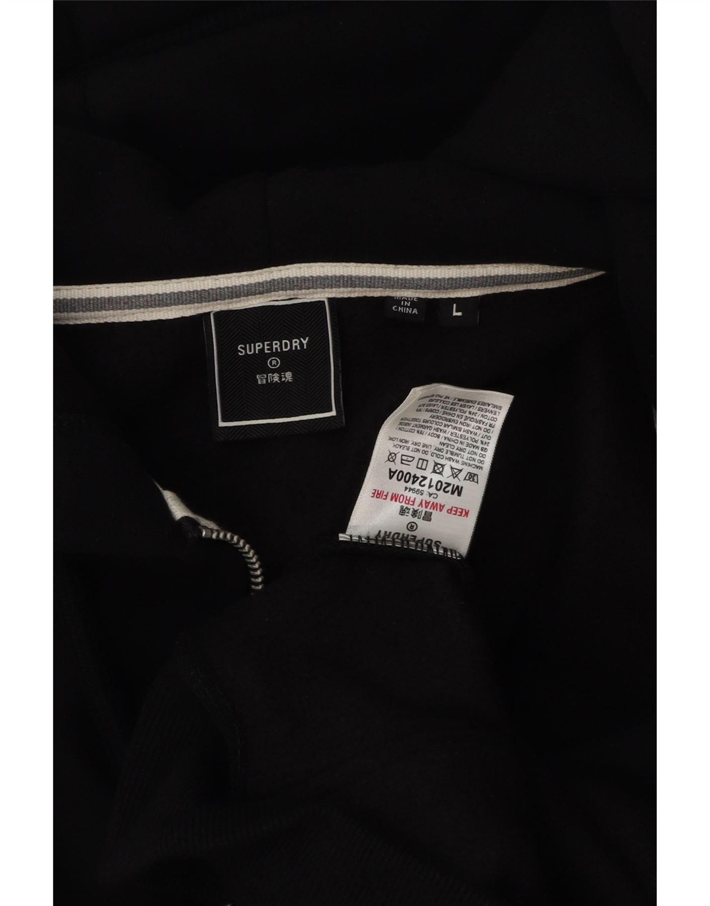 Superdry Herren-Kapuzenpullover mit Reißverschluss, groß, aus schwarzer Baumwolle