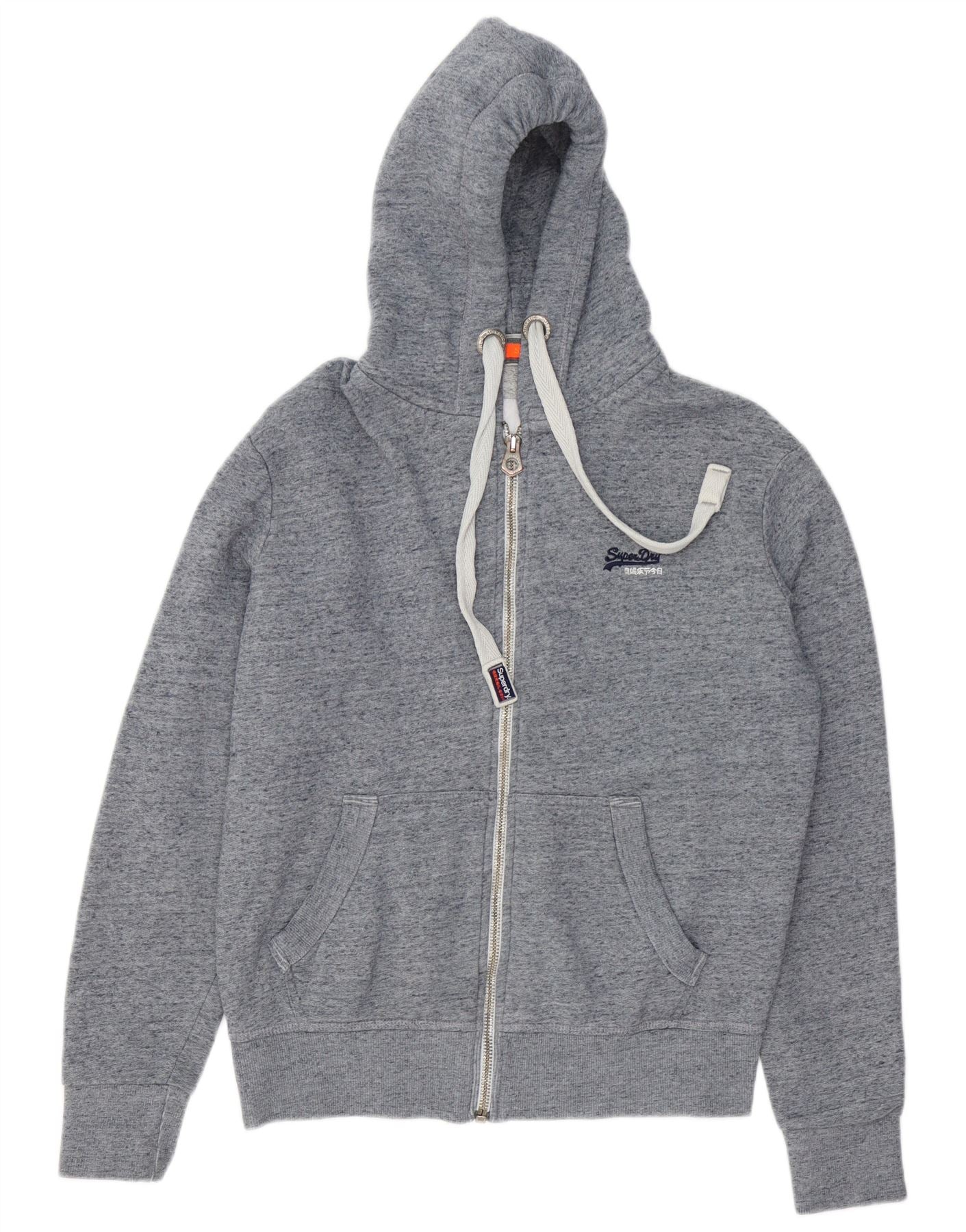 Superdry Herren-Kapuzenpullover mit Reißverschluss, mittelblau gefleckte Baumwolle