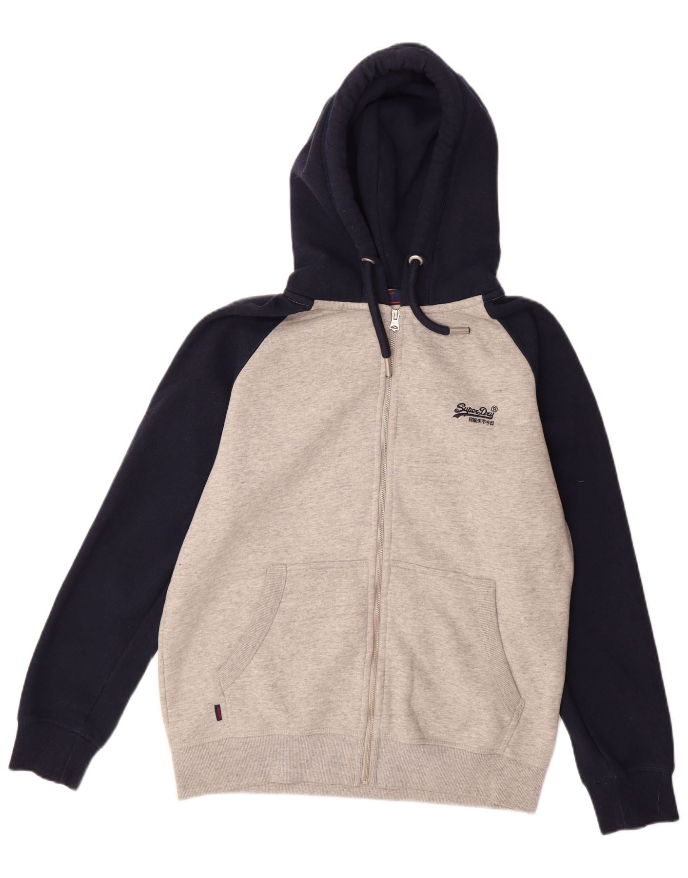 SUPERDRY Herren-Kapuzenpullover mit Reißverschluss, XL, graue Farbblock-Baumwolle