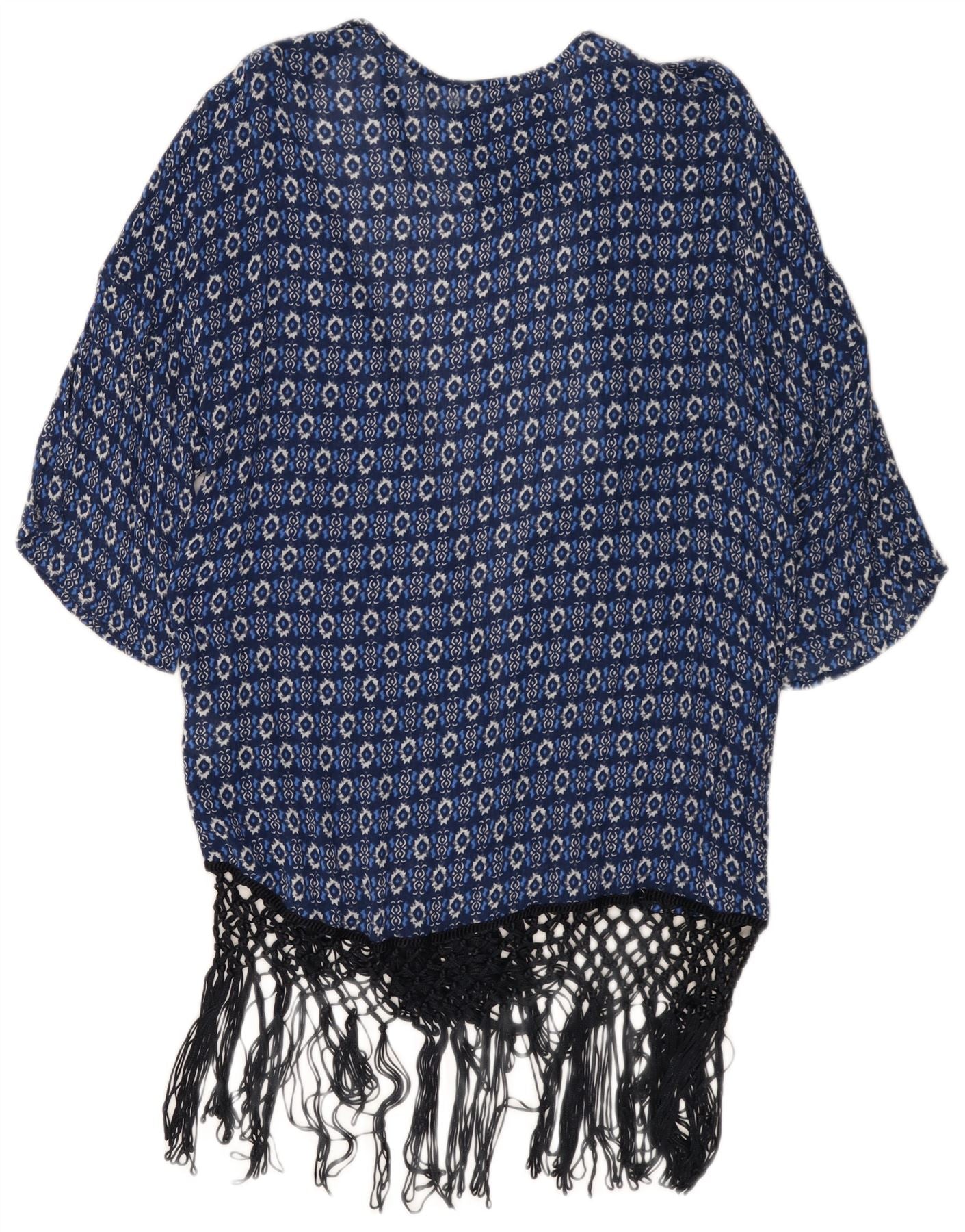 SUPERDRY Longline-Cardigan-Oberteil mit 3/4-Ärmeln für Damen, UK 14, Mittelblau mit Paisley-Muster