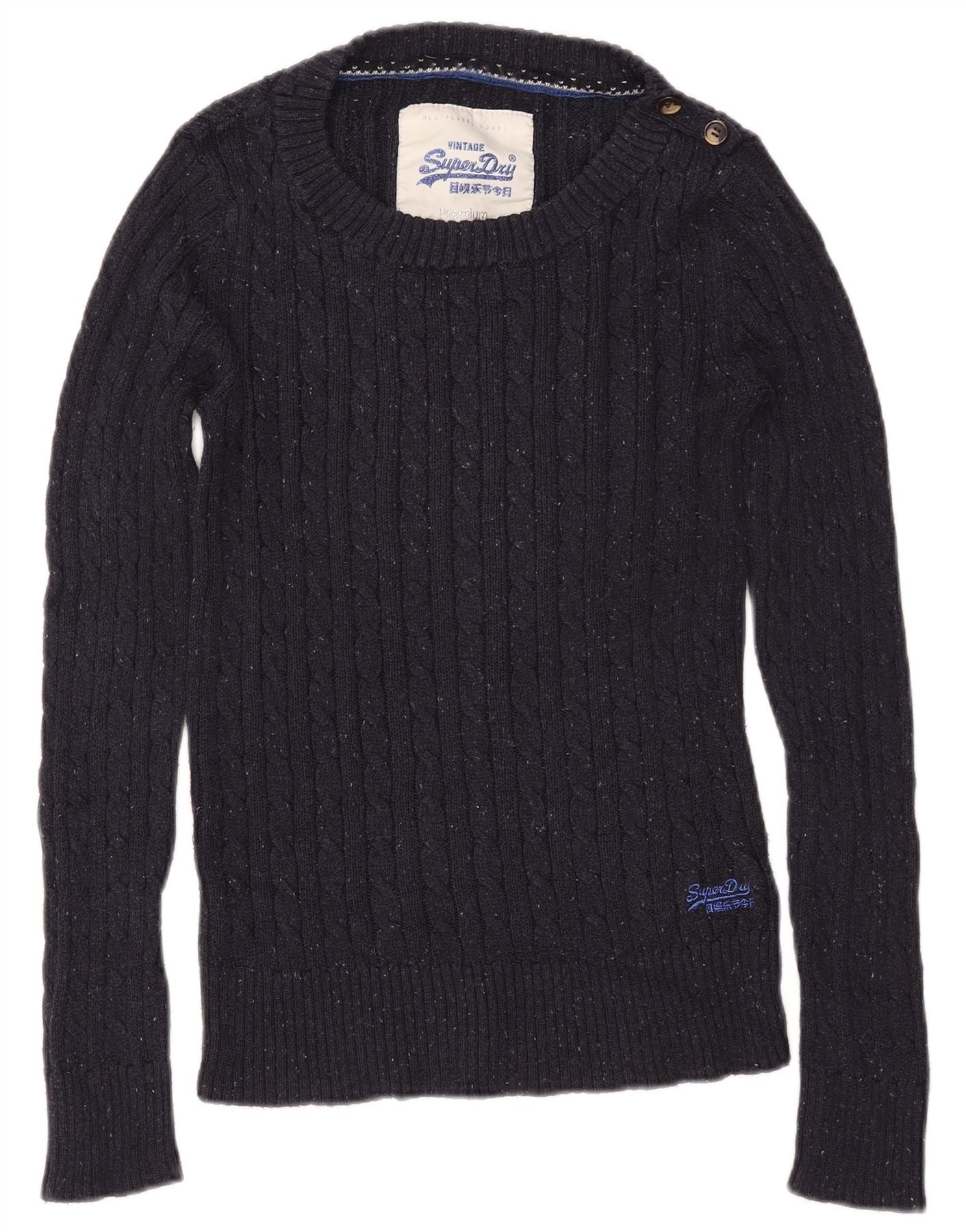 SUPERDRY Damen-Pullover mit U-Boot-Ausschnitt, UK 12, mittelmarineblaue Baumwolle