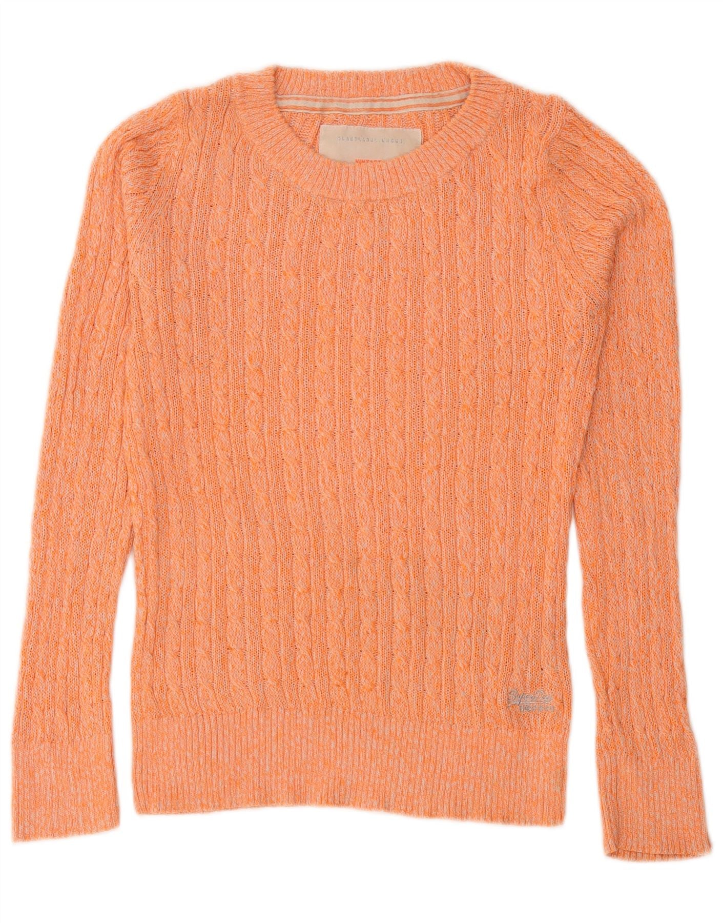 Superdry Damen-Pullover mit Rundhalsausschnitt, UK 14, Größe L, orange gefleckte Baumwolle
