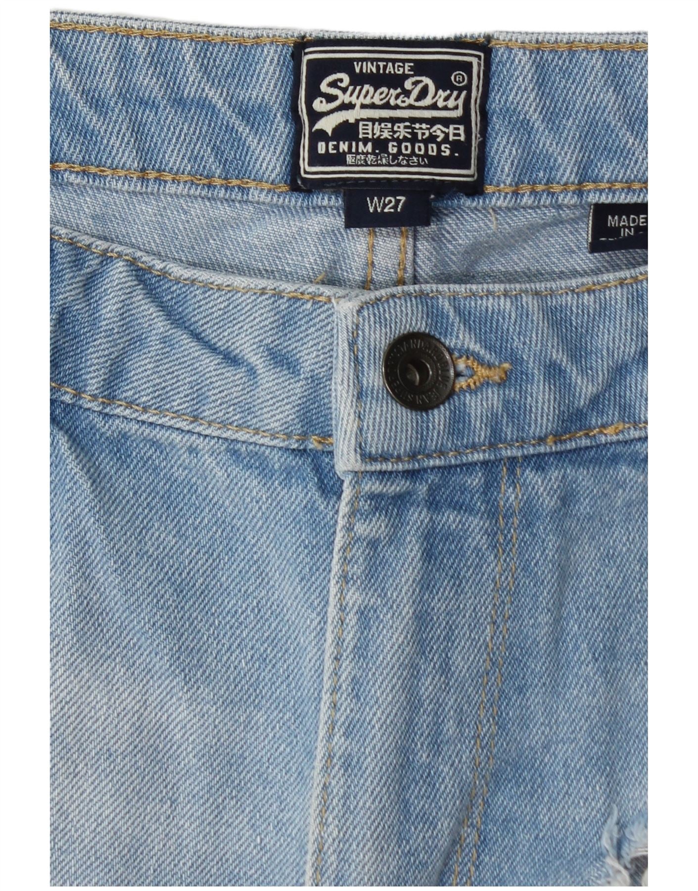 SUPERDRY Damen-Jeansshorts mit Distressed-Grafik, W27, Größe S, Blau, Baumwolle