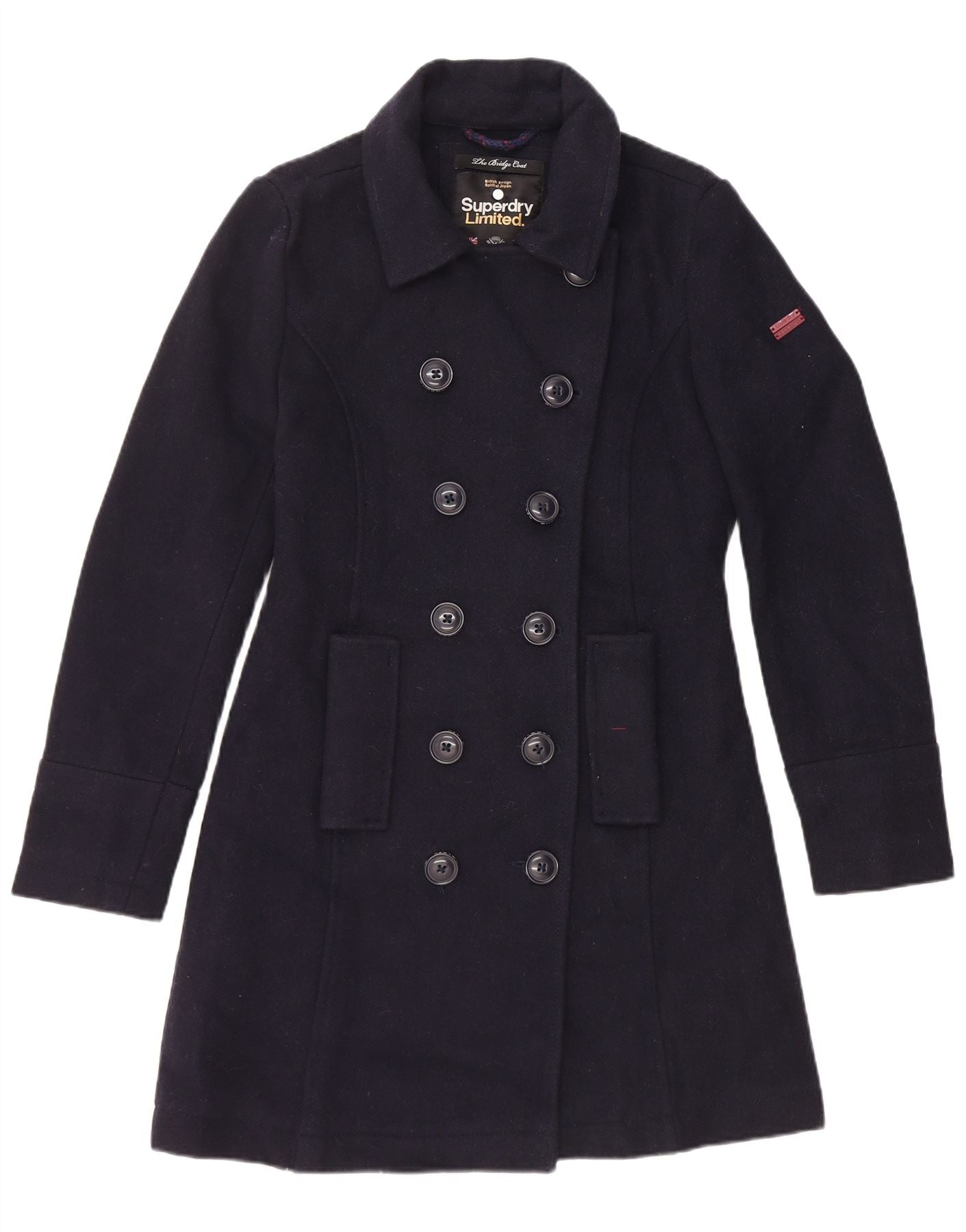 Superdry Zweireihiger Damenmantel UK 12 Mittelblaue Wolle aus Marineblau