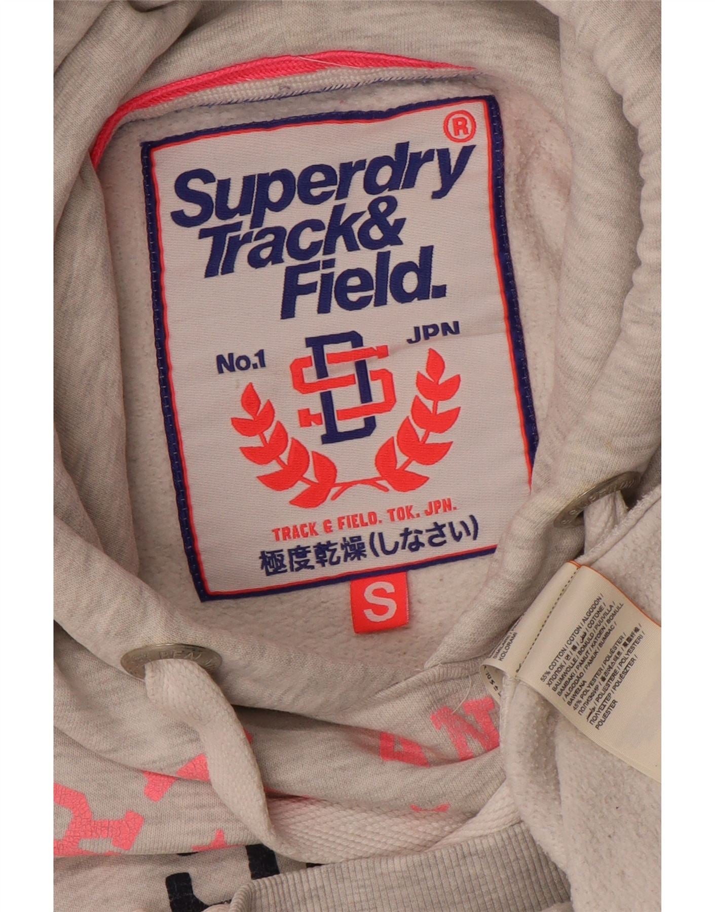 SUPERDRY Damen-Kapuzenpullover mit Grafik, UK 10, Größe S, Grau, Baumwolle
