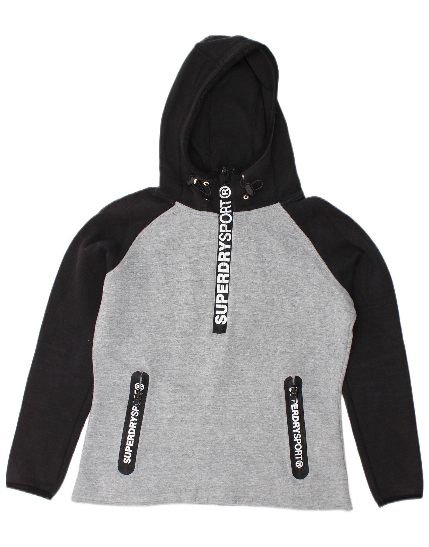 SUPERDRY Grafik-Kapuzenpullover für Damen, UK 14, Mittelgrau, Farbblock