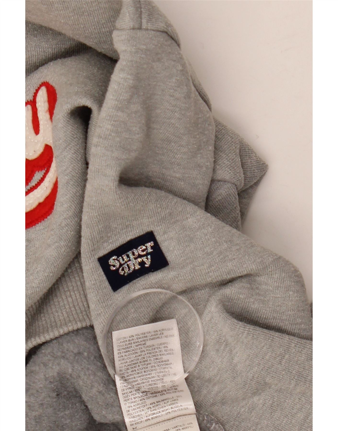SUPERDRY Damen-Kapuzenpullover mit Grafik, UK 14, mittelgraue Baumwolle