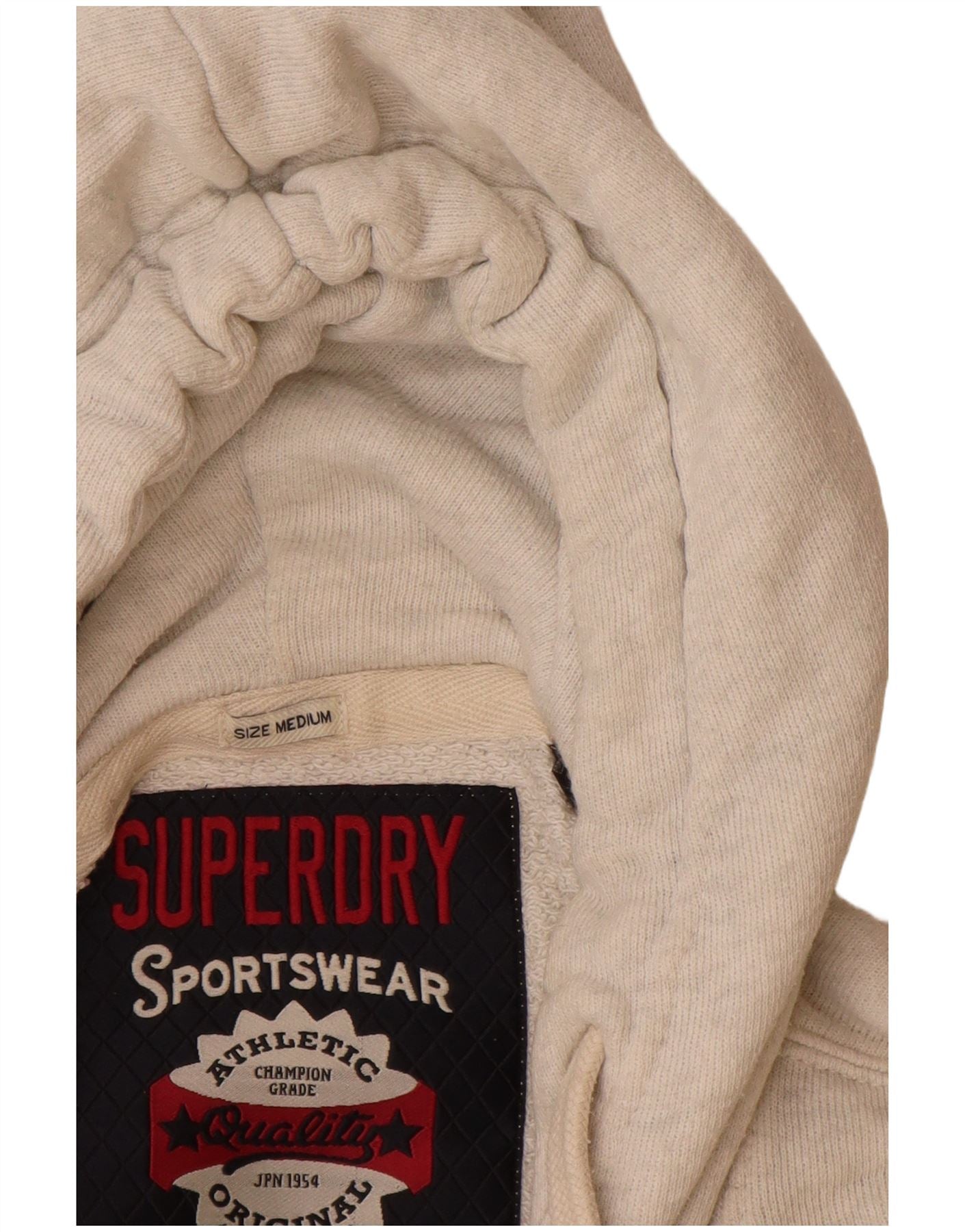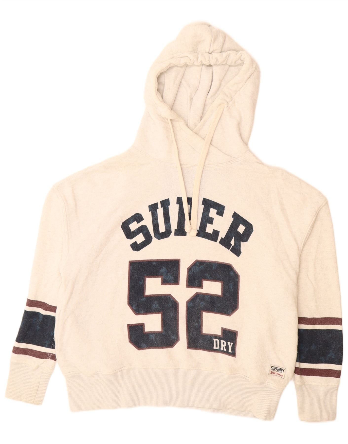 SUPERDRY Womens Graphic Hoodie Jumper UK 14 Medium Off White Cotton