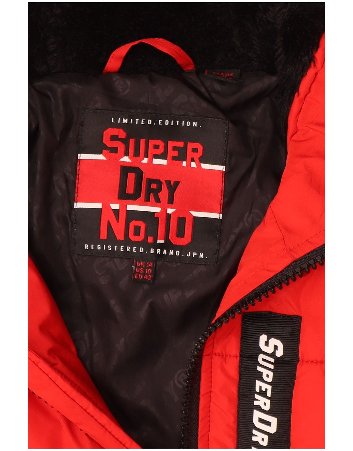 SUPERDRY Womens Graphic Padded Jacket UK 14 Large Red Polyester