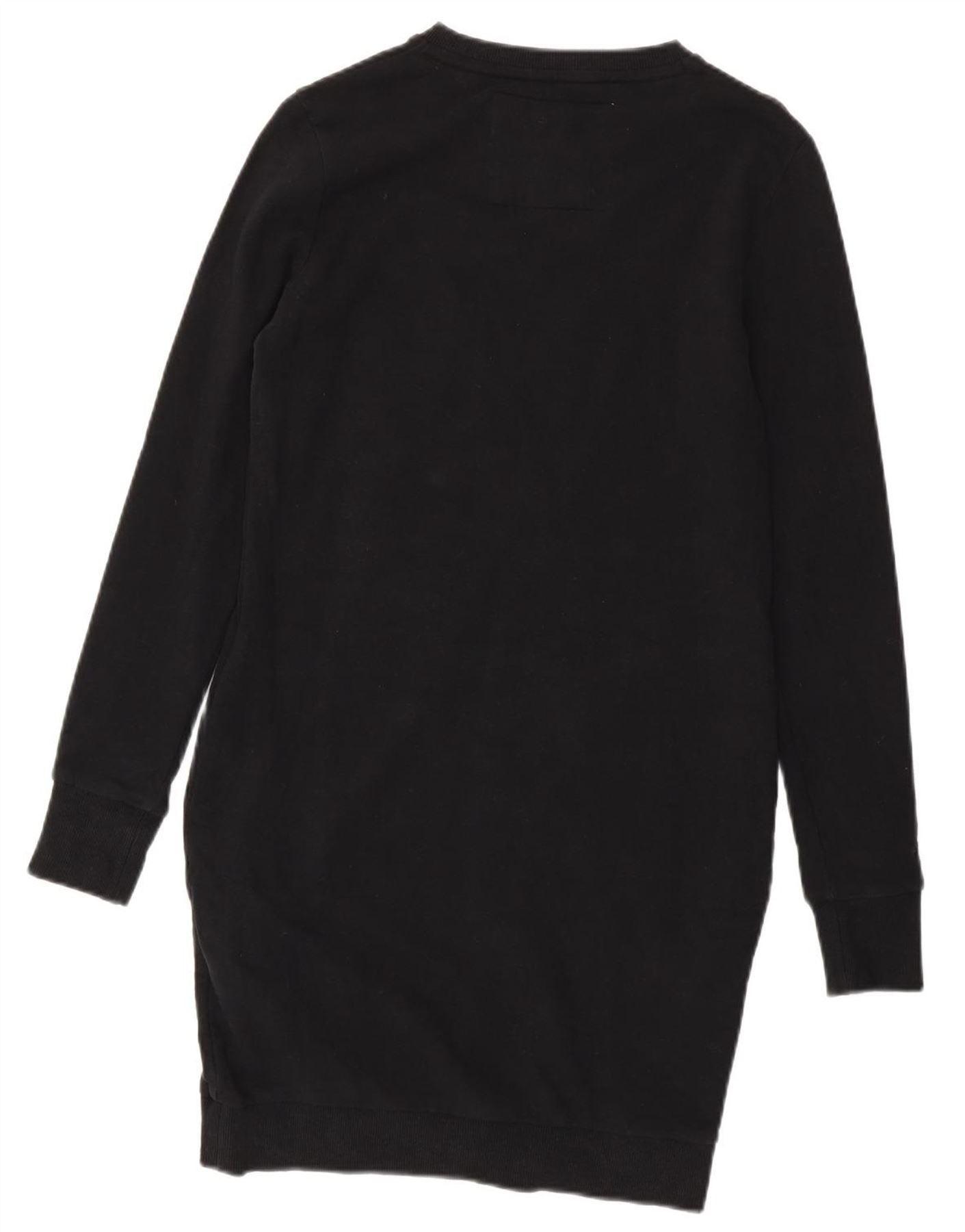SUPERDRY Grafik-Sweatshirt-Pulloverkleid für Damen UK 12 Mittelschwarze Baumwolle
