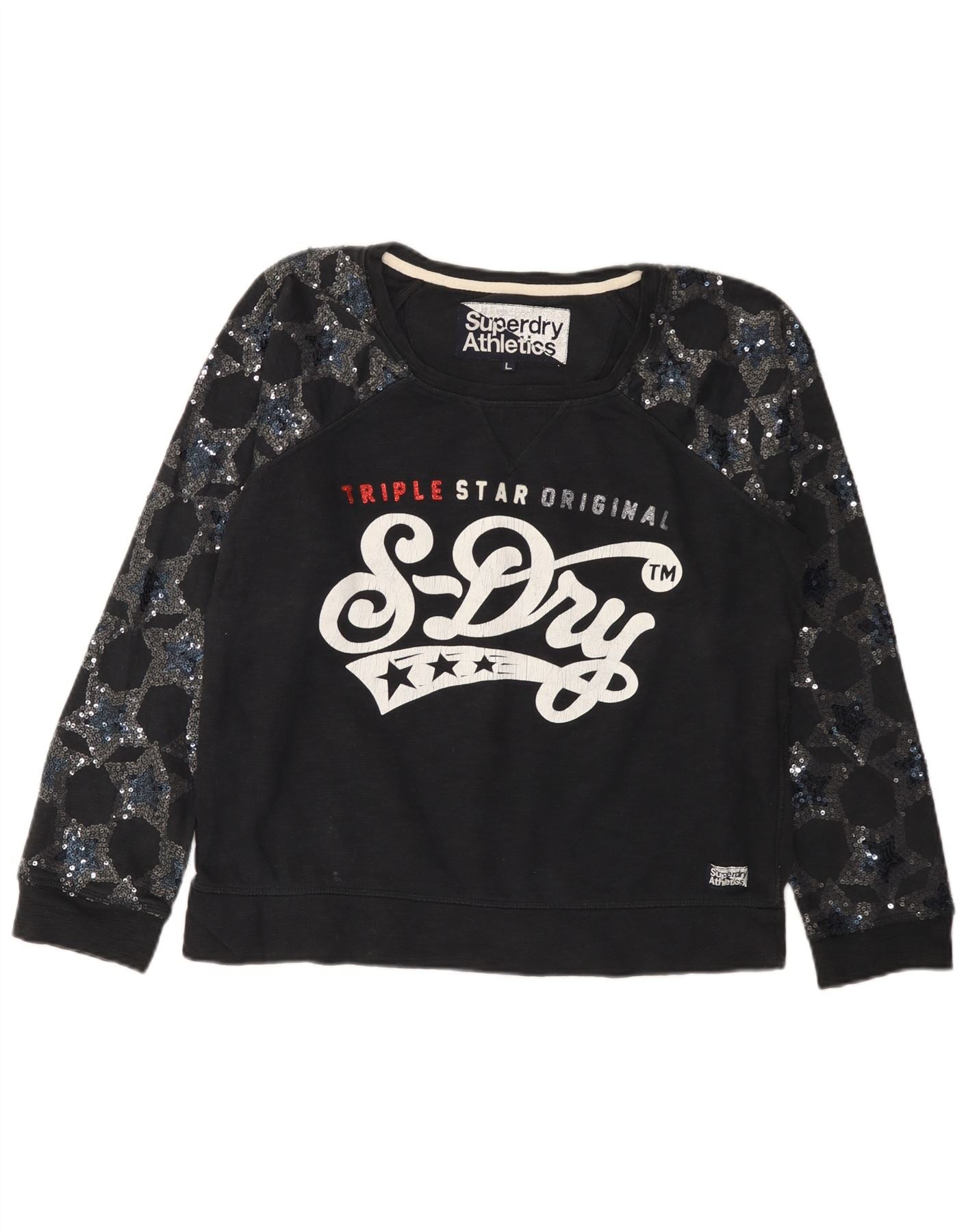 SUPERDRY Grafik-Sweatshirt-Pullover für Damen, UK 16, Größe L, Schwarz, Baumwolle
