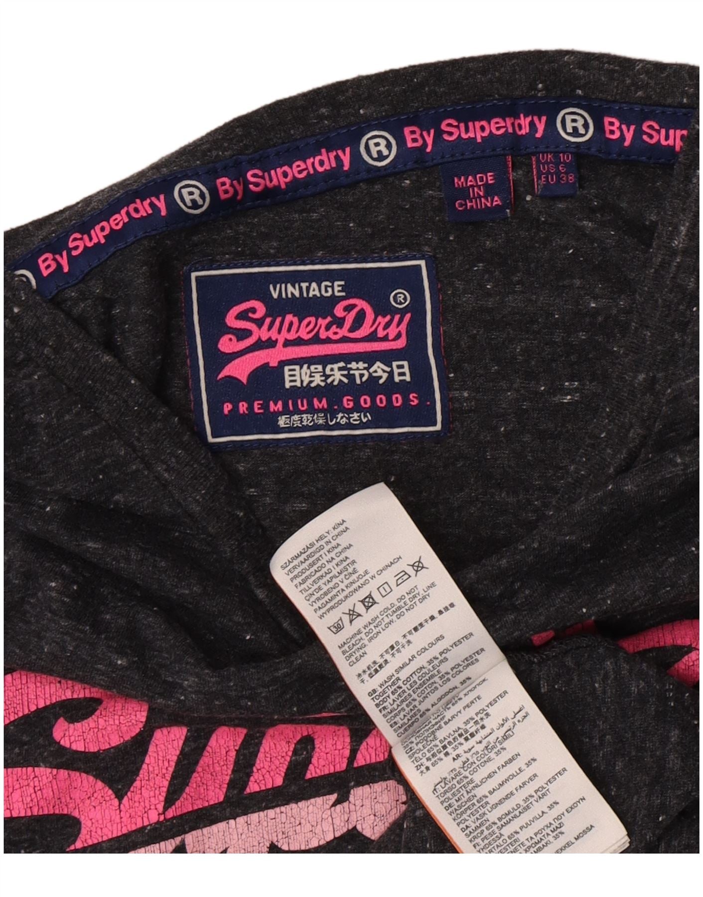 Superdry Damen Grafik-T-Shirt-Oberteil UK 10 Small Grau gefleckte Baumwolle