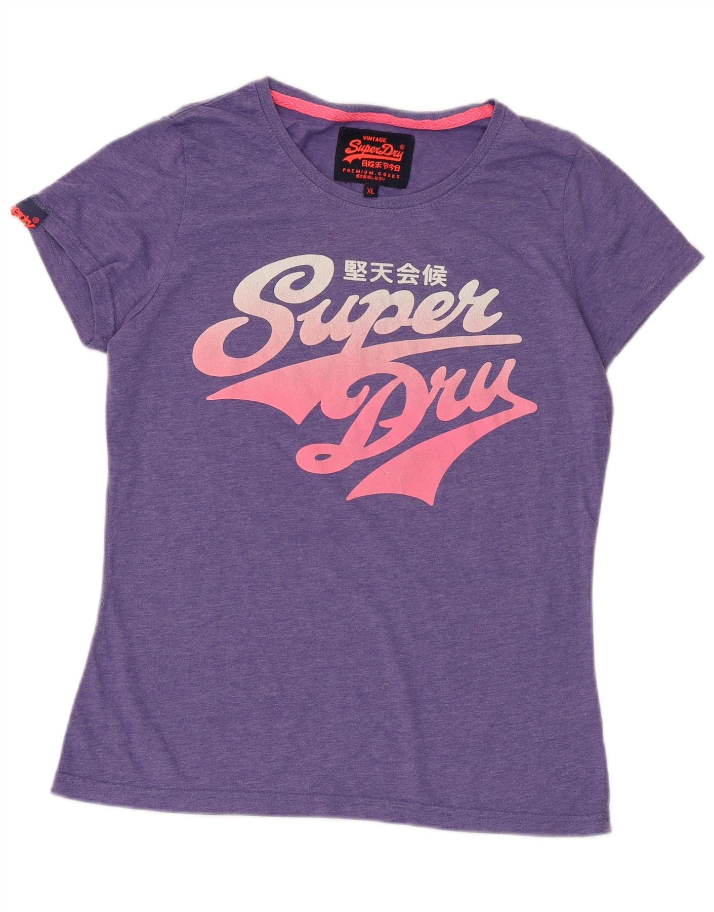 SUPERDRY Damen Grafik-T-Shirt-Oberteil UK 18 XL Lila Baumwolle