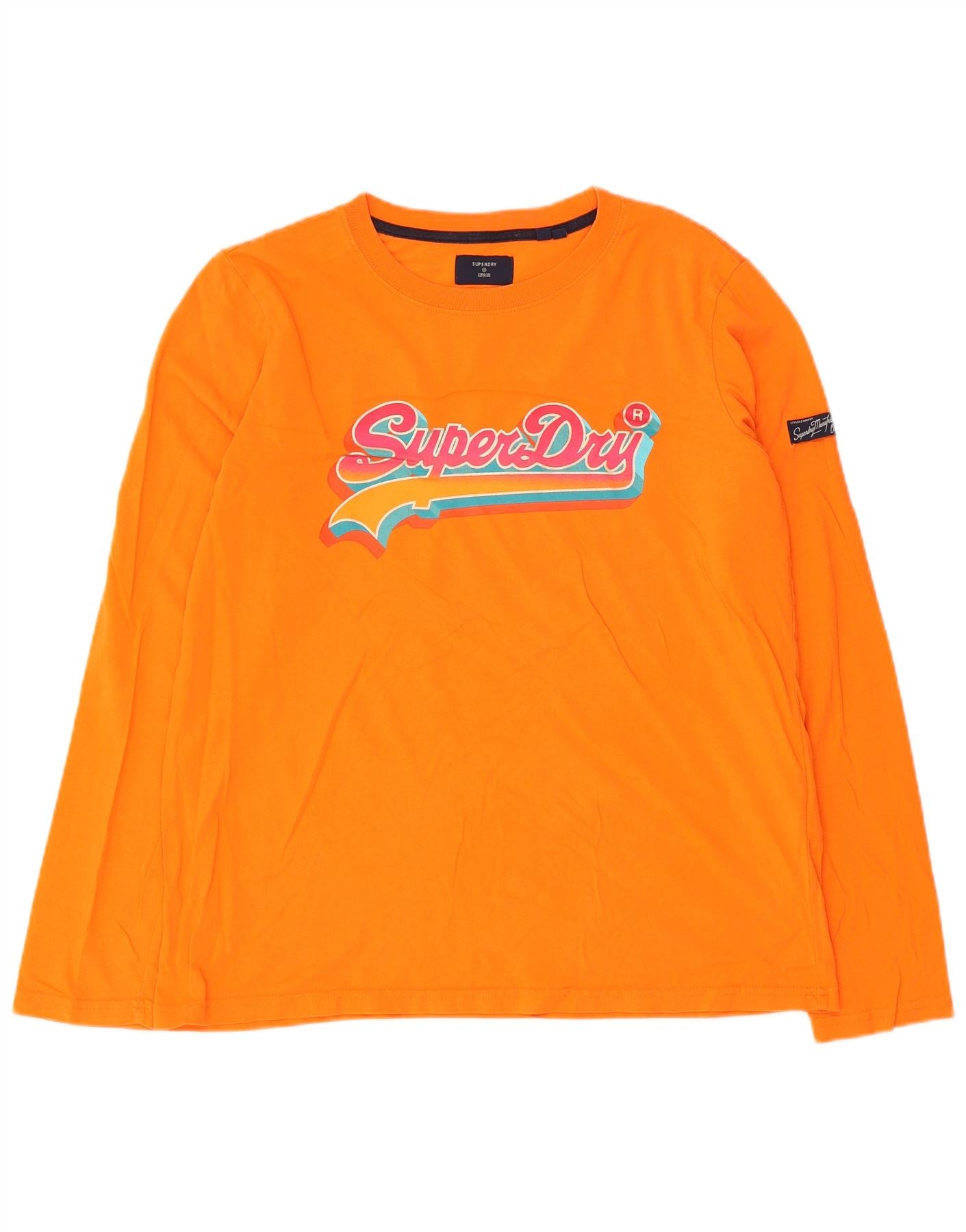 Superdry Damen Graphic Top Langarm UK 12 Mittelorange Baumwolle