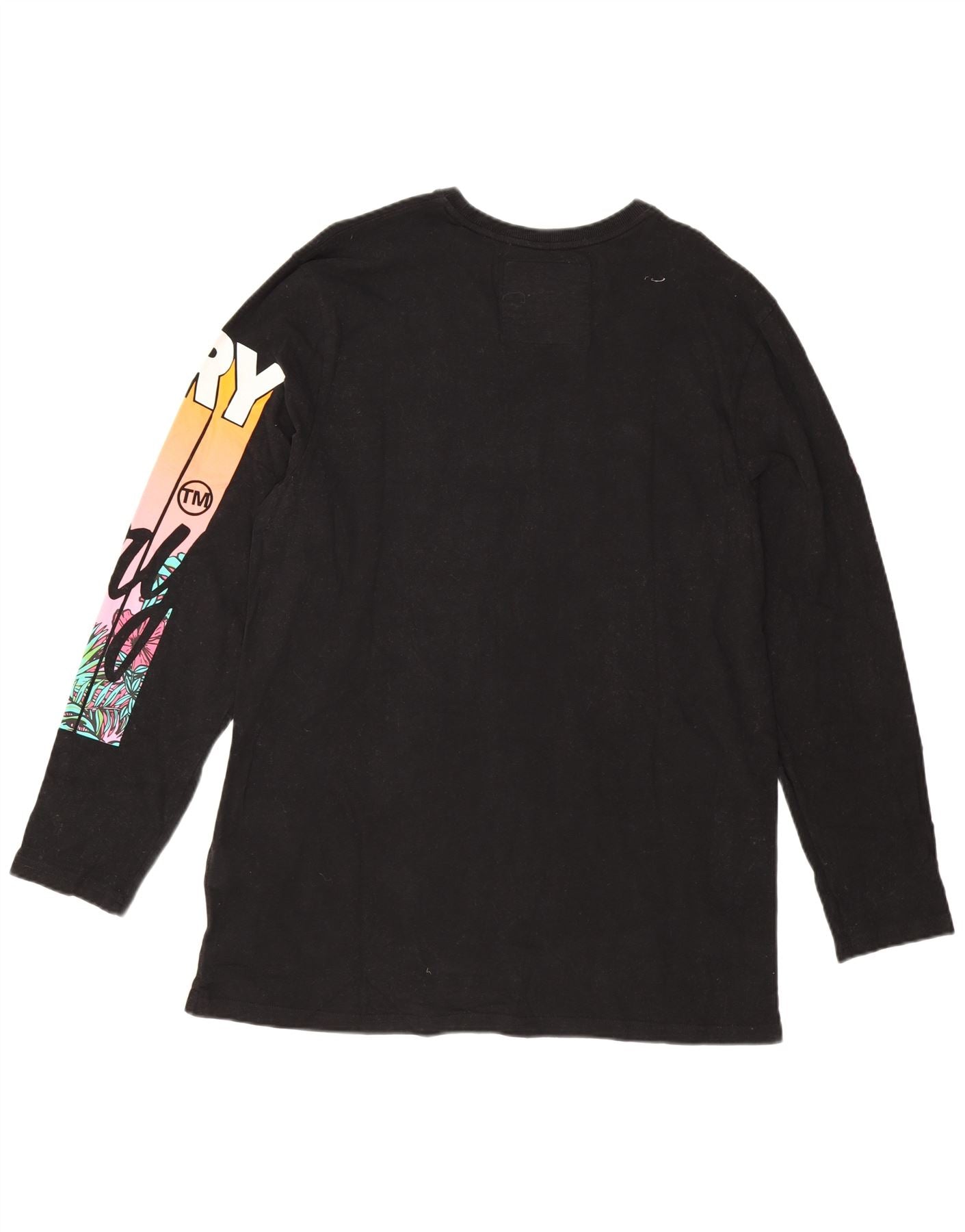 Superdry Damen Graphic Top Langarm UK 18 XL Schwarz Baumwolle