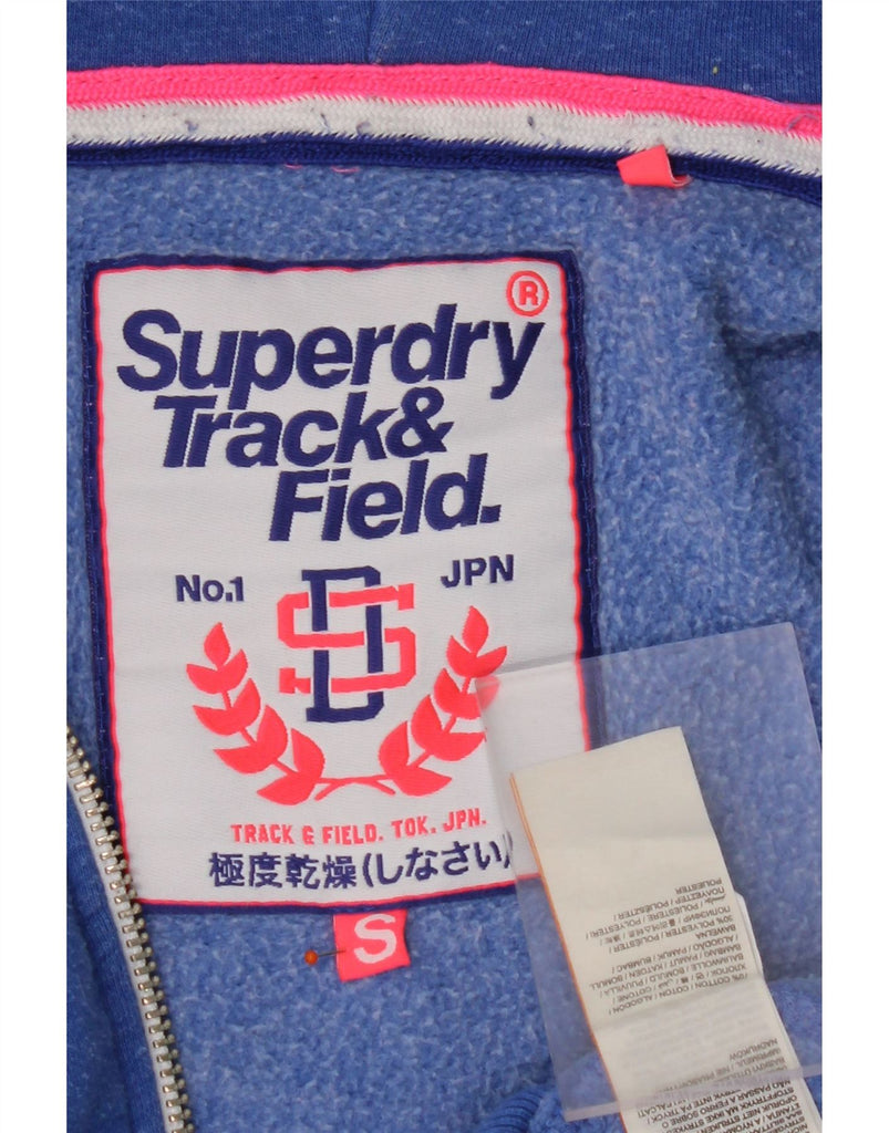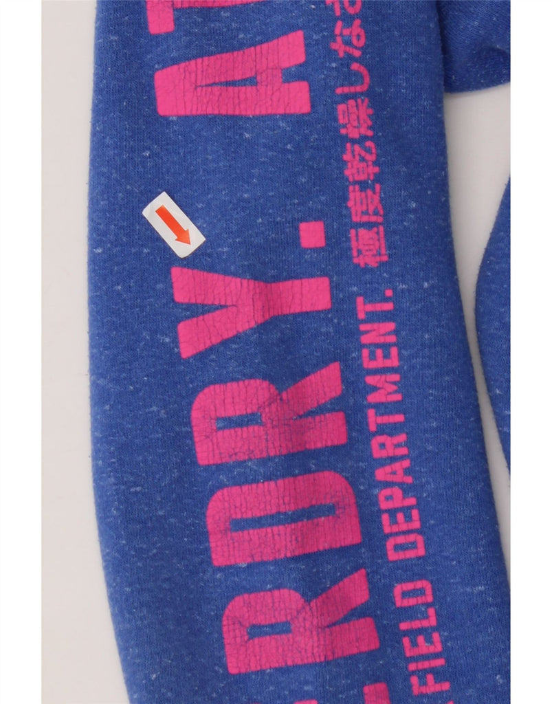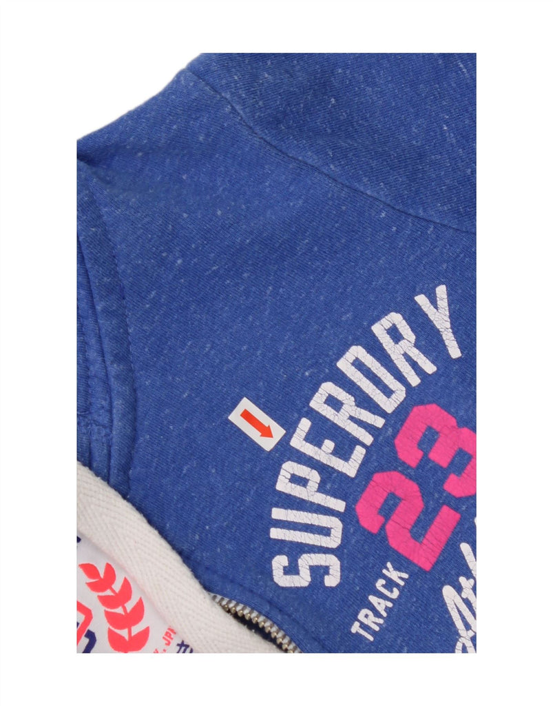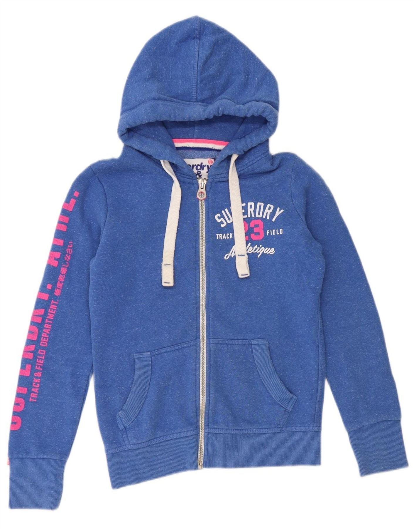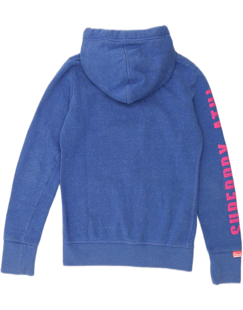 SUPERDRY Womens Graphic Zip Hoodie Sweater UK 10 Small Blue Flecked Cotton