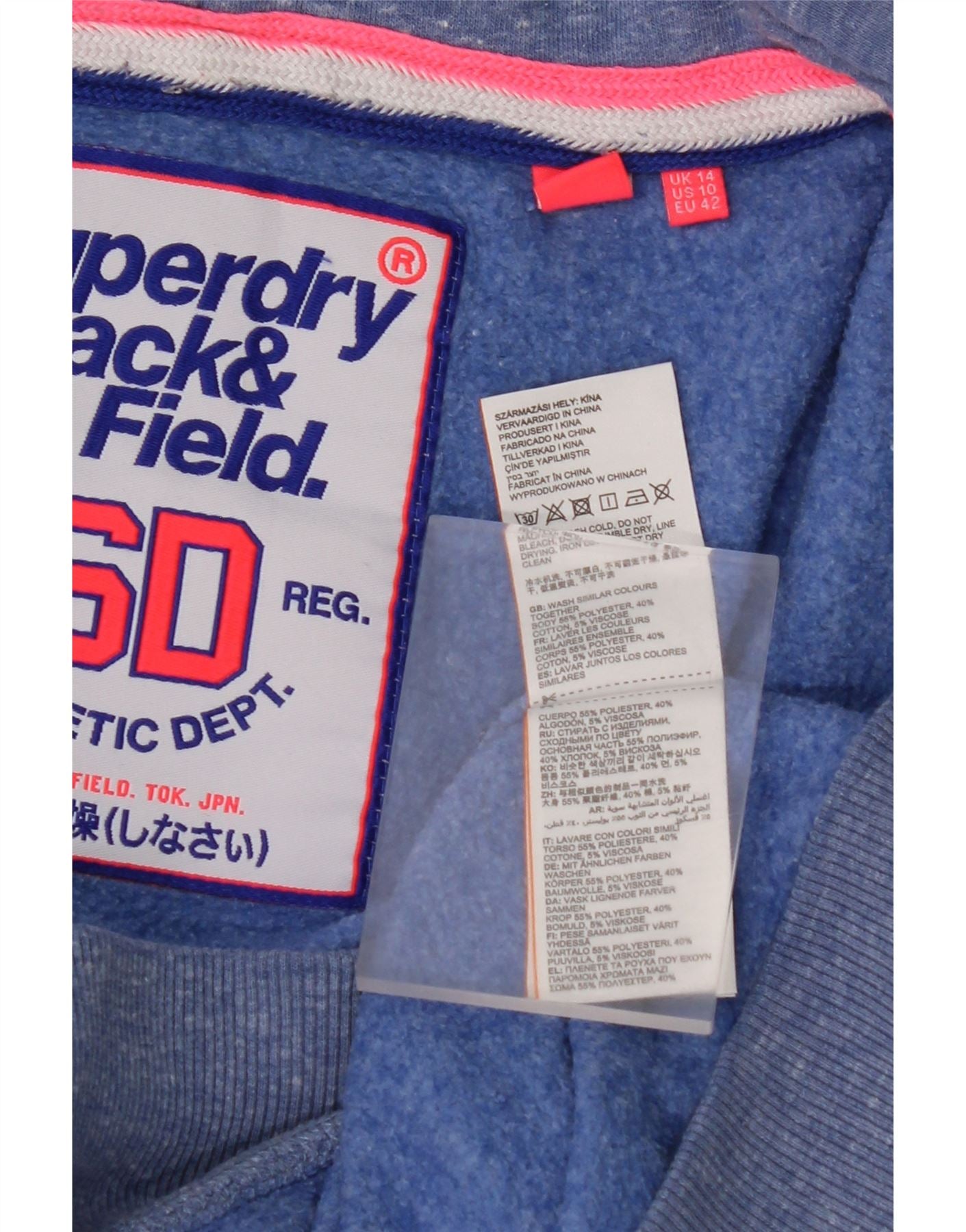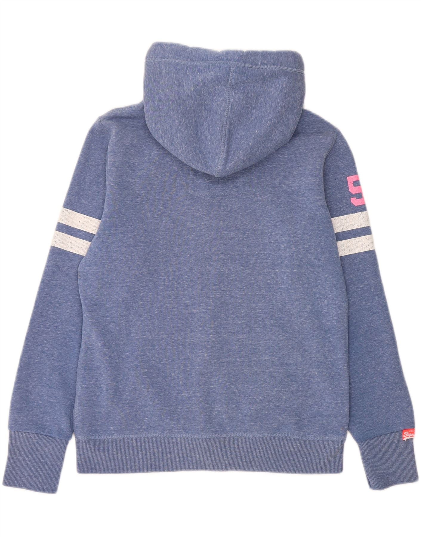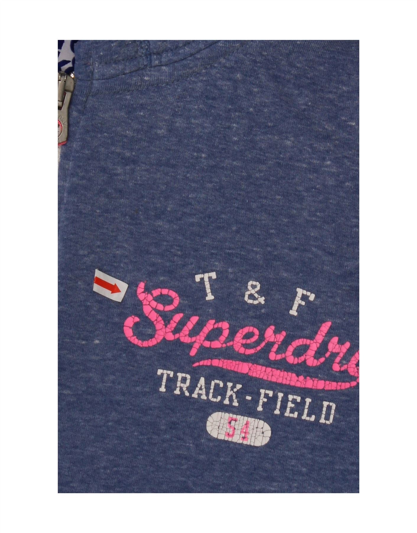 SUPERDRY Womens Graphic Zip Hoodie Sweater UK 14 Large Blue Flecked