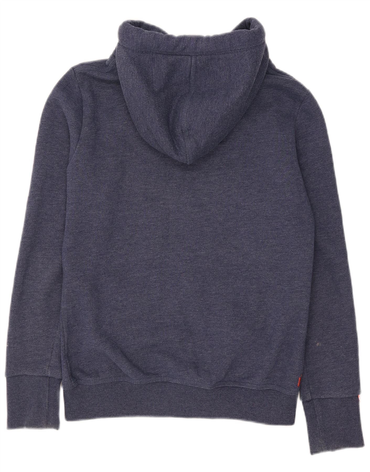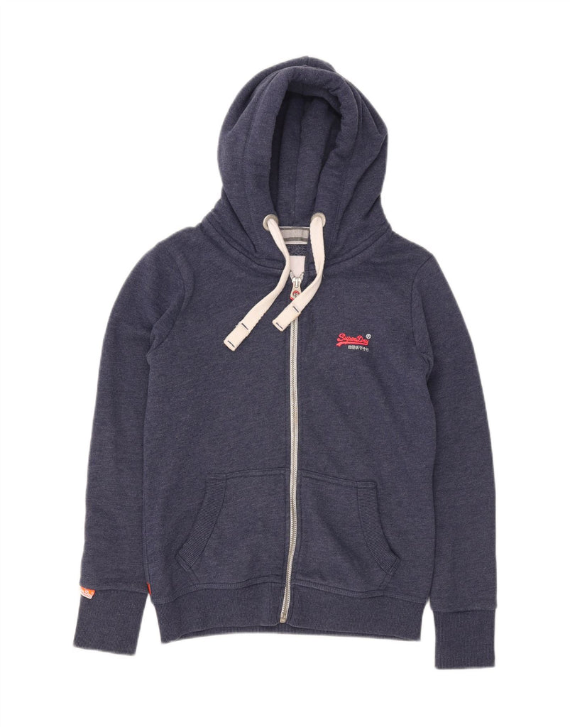 SUPERDRY Womens Graphic Zip Hoodie Sweater UK 14 Medium Blue Cotton