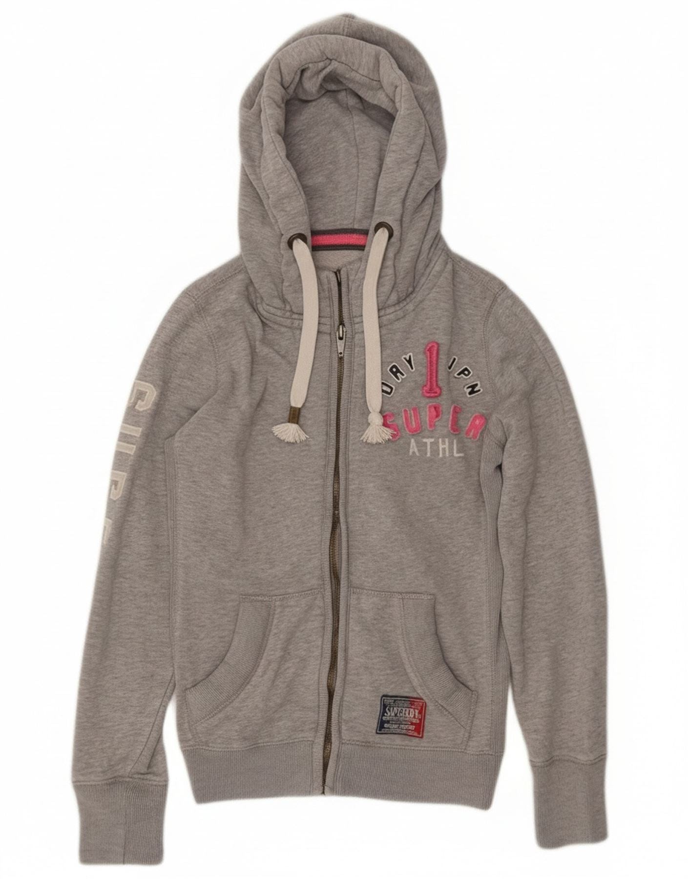 Superdry Damen Graphic Zip Hoodie Pullover UK 14 Mittelgraue Baumwolle