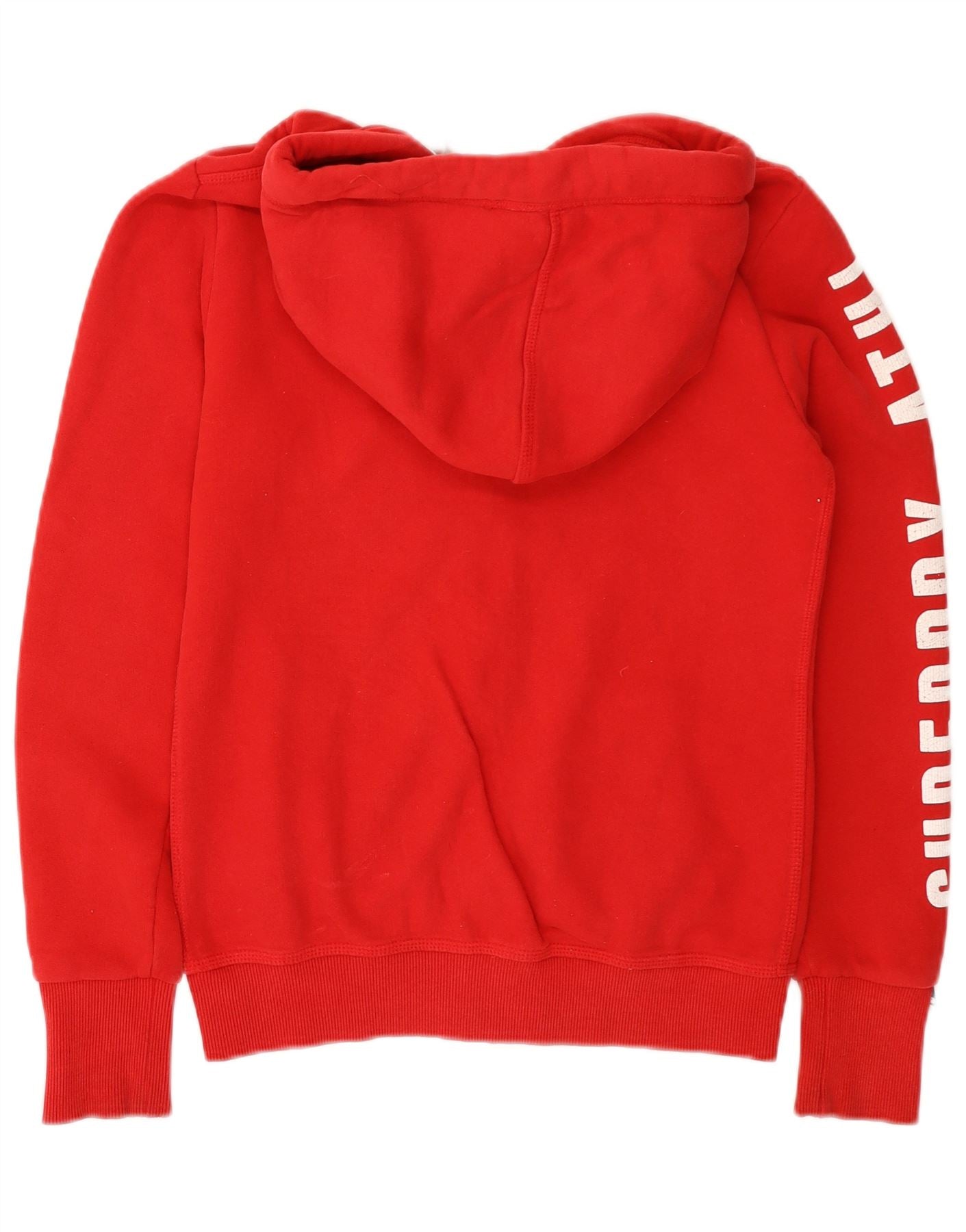 SUPERDRY Womens Graphic Zip Hoodie Sweater UK 14 Medium Red Cotton