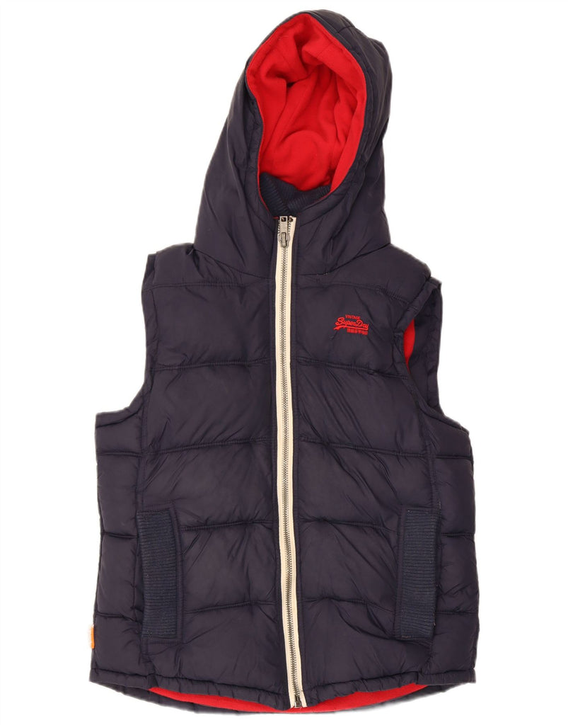 SUPERDRY Womens Hooded Padded Gilet UK 16 Large Navy Blue Polyester