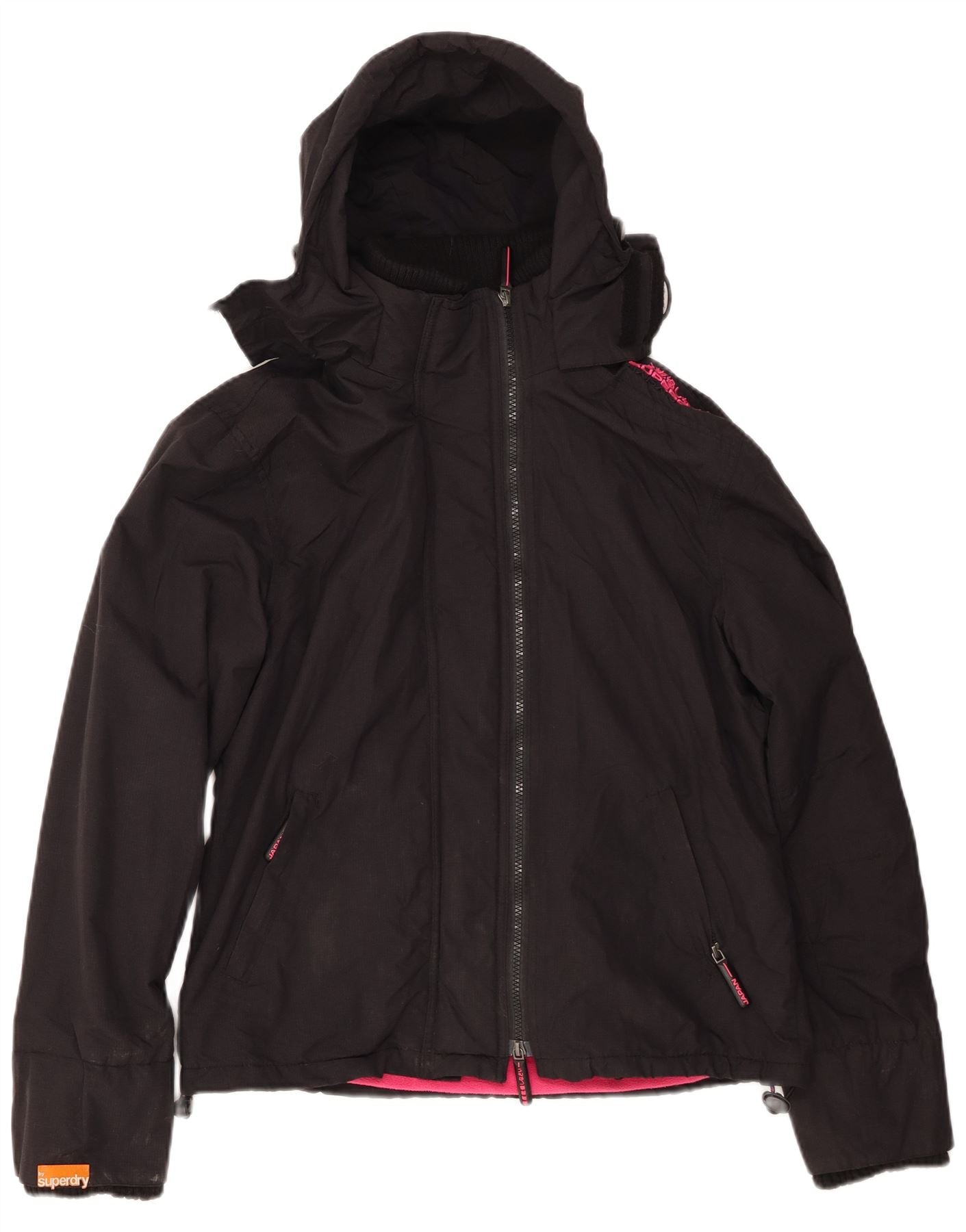Superdry Damen-Windbreakerjacke mit Kapuze, UK 18 XL, schwarzes Nylon