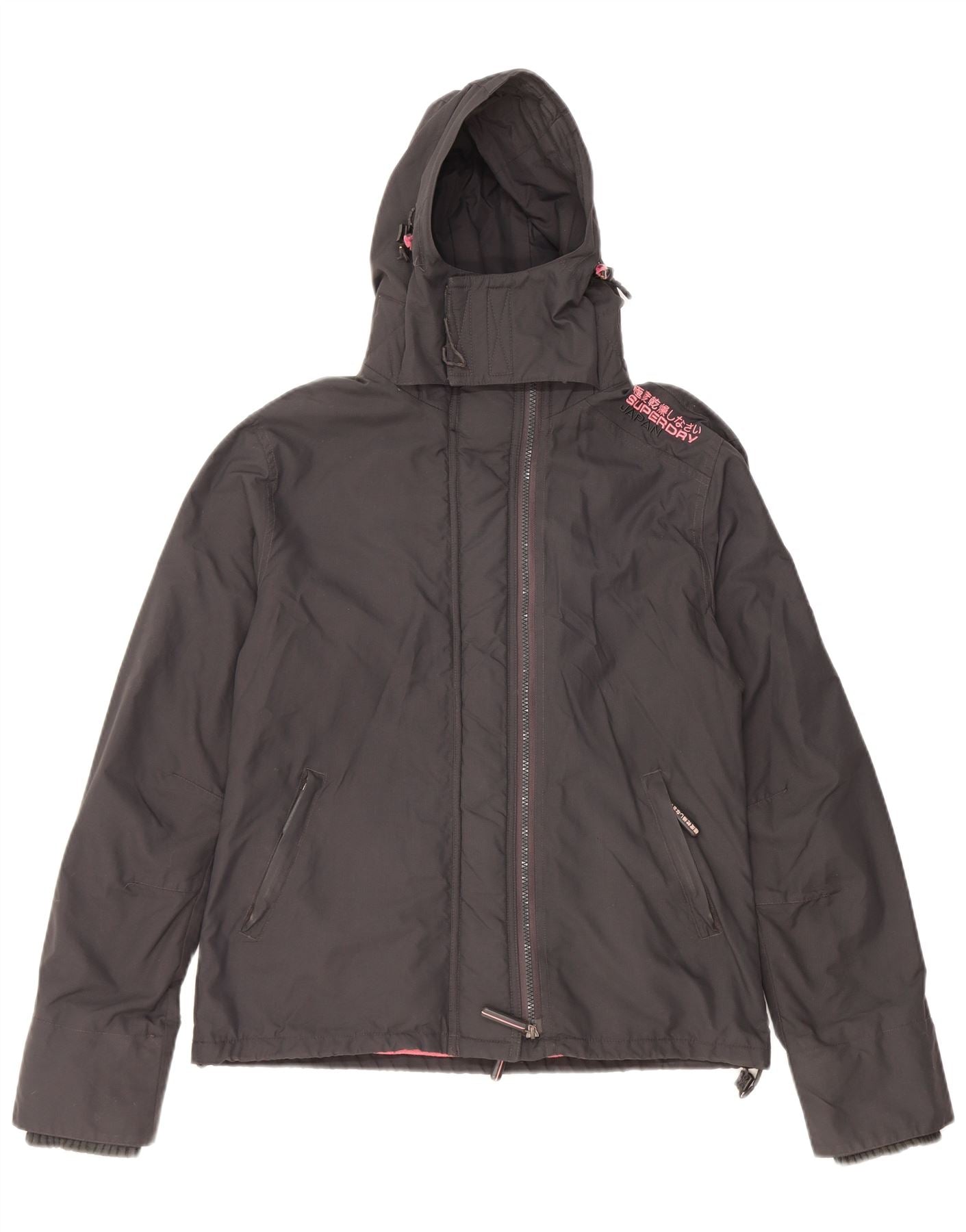 Superdry Damen-Windbreakerjacke mit Kapuze, UK 18 XL, graues Nylon