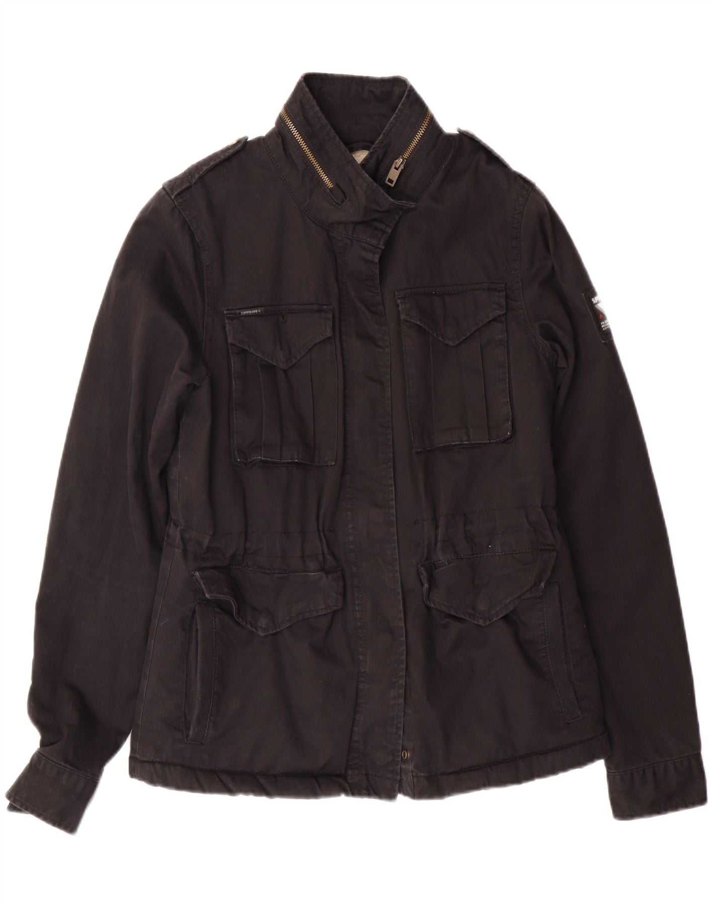 SUPERDRY Damen Militärjacke UK 10 Small Schwarz Baumwolle