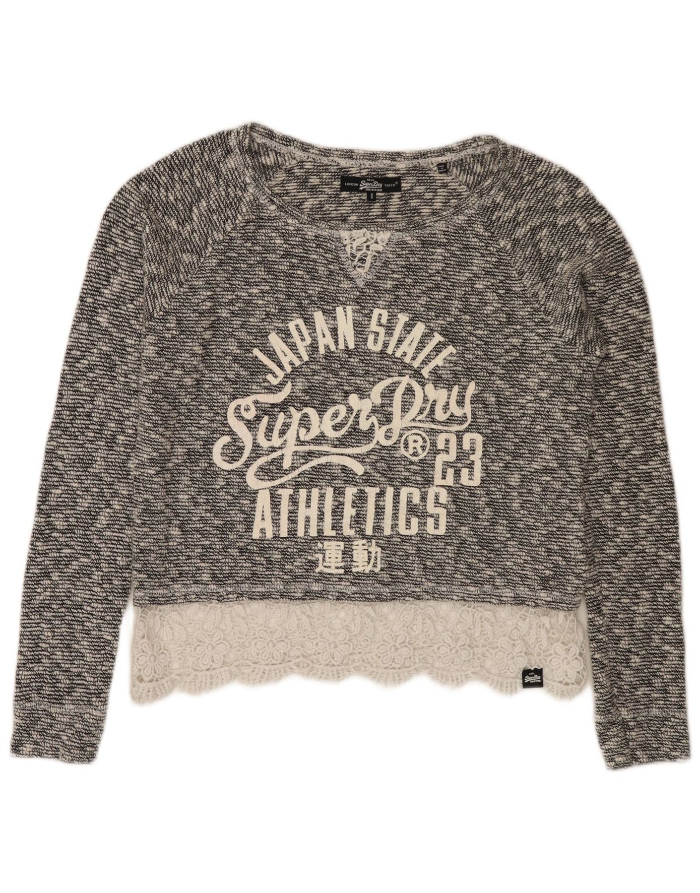 Superdry Damen-Pullover, übergroß, kurz geschnitten, U-Boot-Ausschnitt, UK 6, XS, Grau, Baumwolle