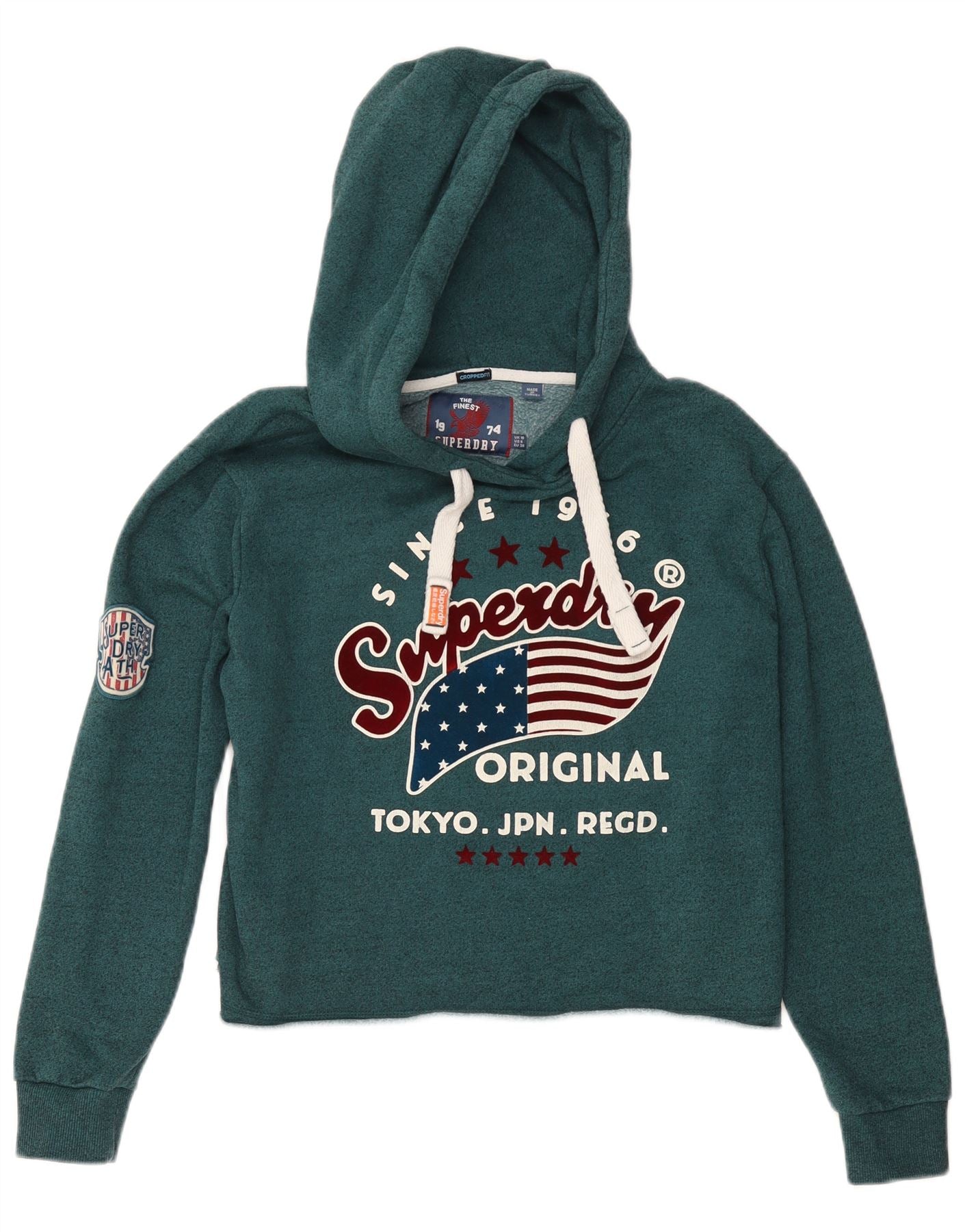SUPERDRY Damen-Kapuzenpullover mit übergroßem, bauchfreiem Grafikdesign, Gr. 10, Größe S, Grün