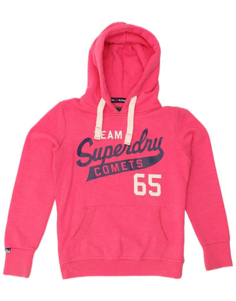 SUPERDRY Womens Oversized Graphic Hoodie Jumper UK 10 Small Pink Cotton