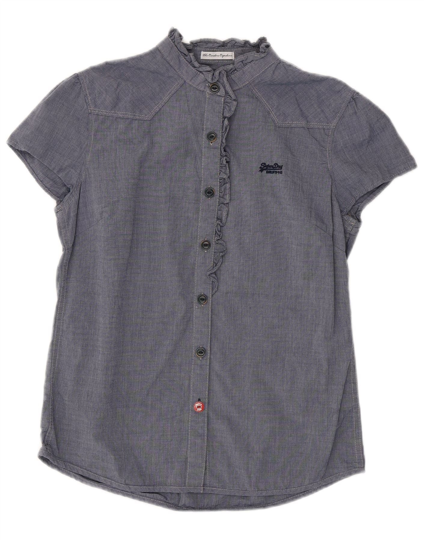 SUPERDRY Damen-Hemdbluse mit Rüschen vorne, UK 12, mittleres Marineblau