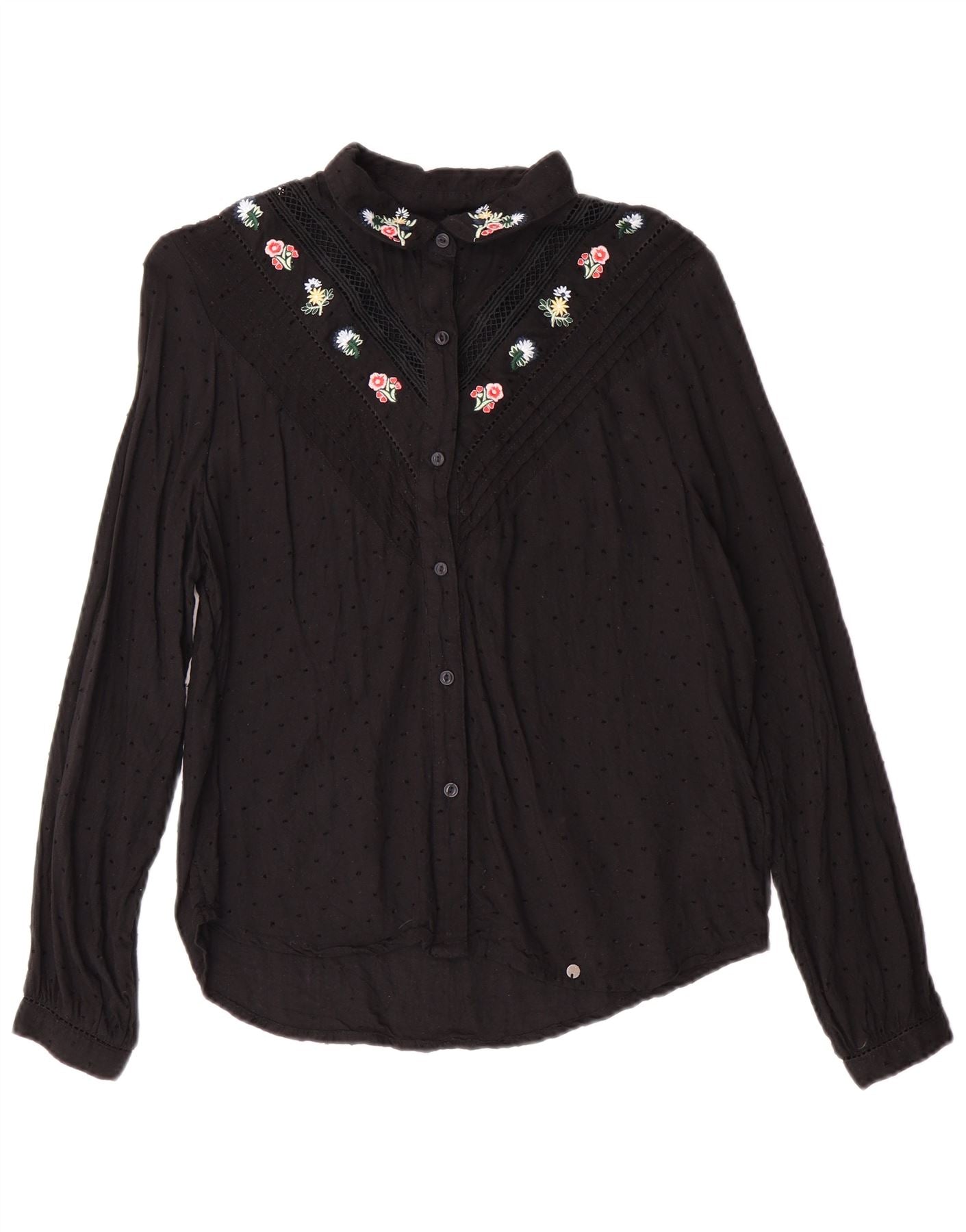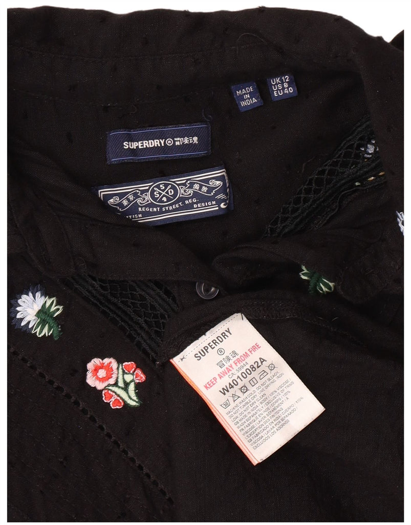 SUPERDRY Damen-Hemdbluse UK 12 Mittelschwarze Viskose mit Blumenmuster